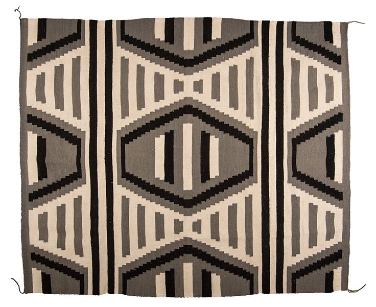 Navajo Weaving. 5'9" x 4'10". Third Phase Chief's Blanket woven with all natural colored yarns. Circa 1970's. Includes award ribbon. Provenance: First Place Ribbon from the New Mexico State Fair, dated 1976.