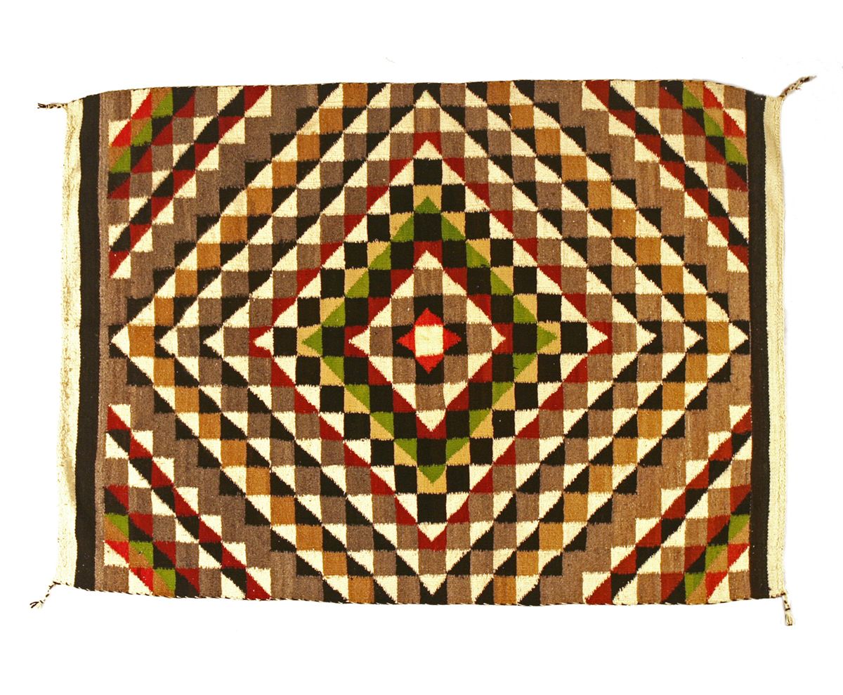 Navajo Weaving. 5' x 3'7". Optical illusion pattern. Complex & colorful eye dazzler. Circa 1950.
