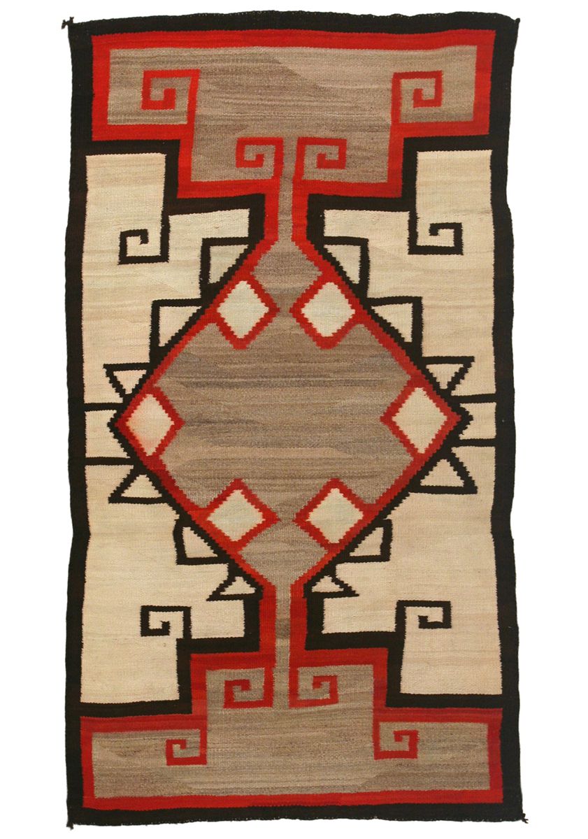 Navajo Weaving. 6'10" x 3'8". A large bold Ganado Trading Post floor rug. Woven from all long staple smooth Churro sheep wool. Circa 1920.
