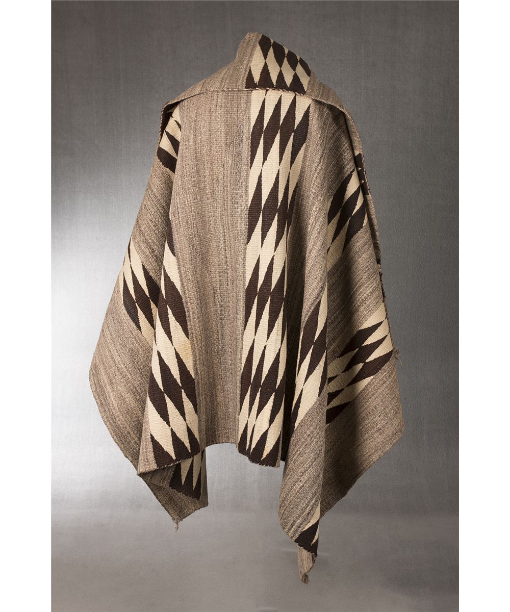 Navajo Weaving. 6'5" x 4'10". A beautifully woven antique Navajo transitional serape blanket / rug with five panels of black and white intermeshing diamonds on a very nice hand carded variegated grayish brown background. Woven from all Native handspun silky long staple Churro sheep wool. Circa 1890s.