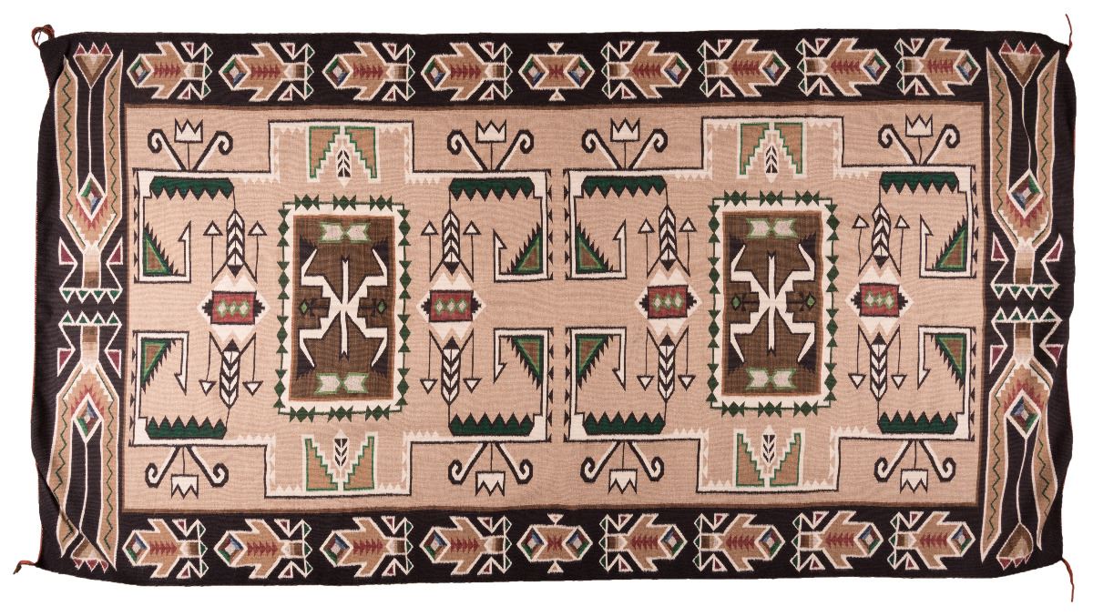 Navajo Weaving. 7'10" x 4'2". Teec Nos Pos weaving finely woven with homespun yarn. Circa 1960.