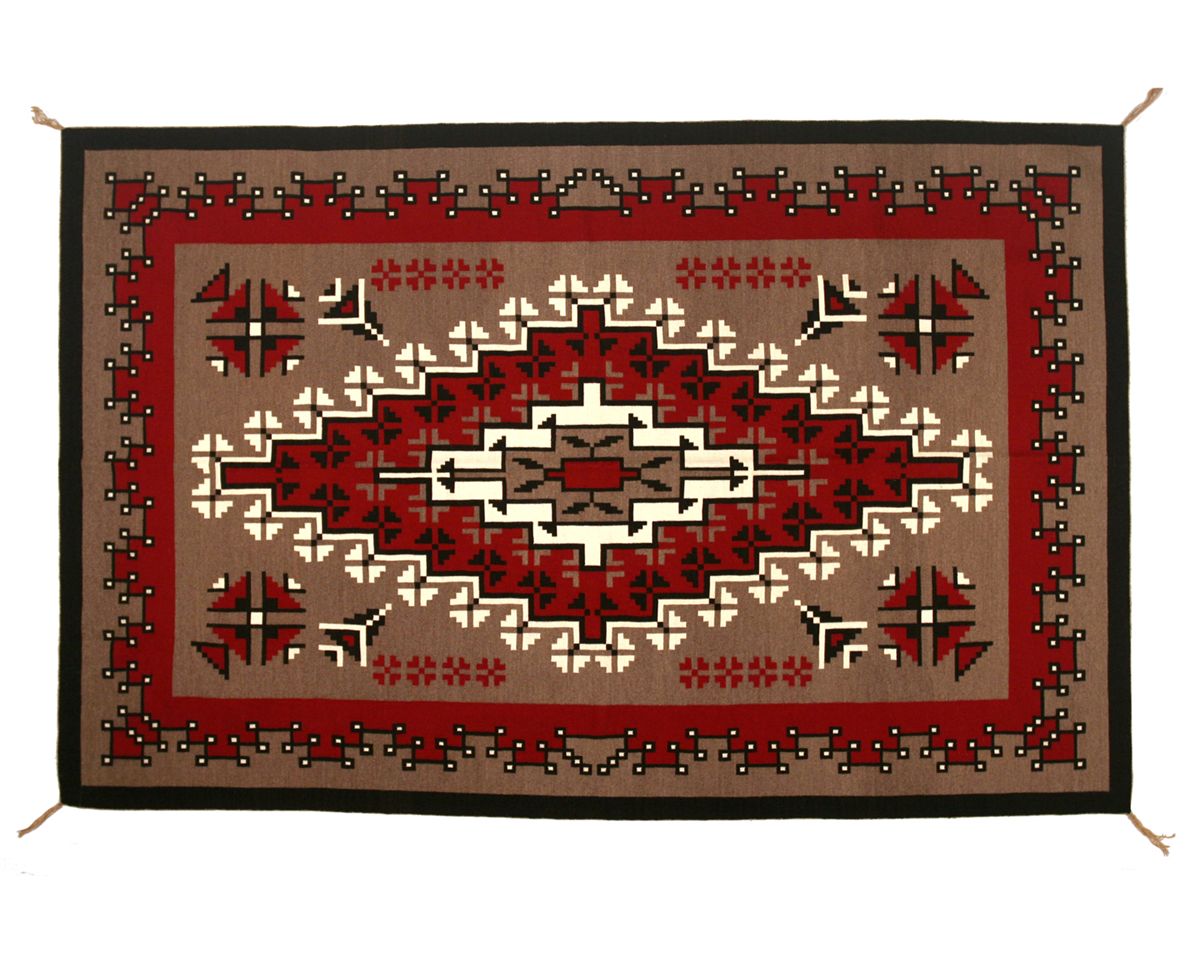 Navajo Weaving. 7'10" x 5'. Nice large Ganado weaving. All hand carded and spun. Unusual layout and very fine for the size. Great warm colors. Woven by Stella Todacheeny. Last quarter 20th century.