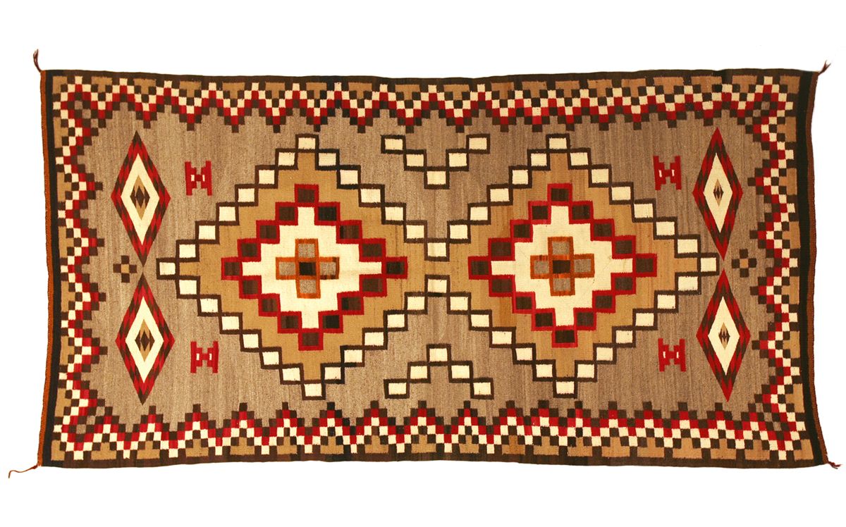 Navajo Weaving. 7' x 3'9". Ganado area. Double stepped diamond design with a checkerboard border. Circa 1940.