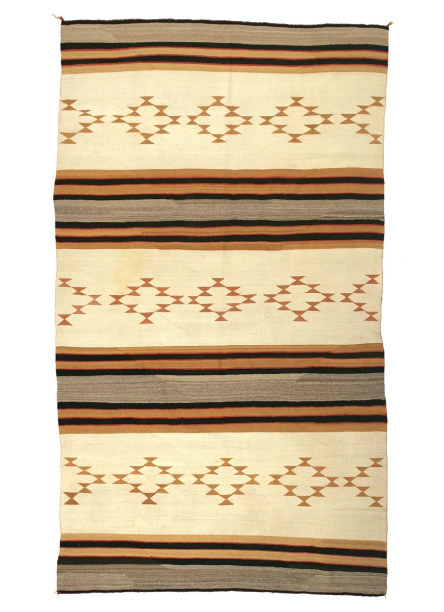 Navajo Weaving. 8' x 4'6". Large Chinle Revival Serape. Woven in a classic three panel serape layout. Circa 1930.