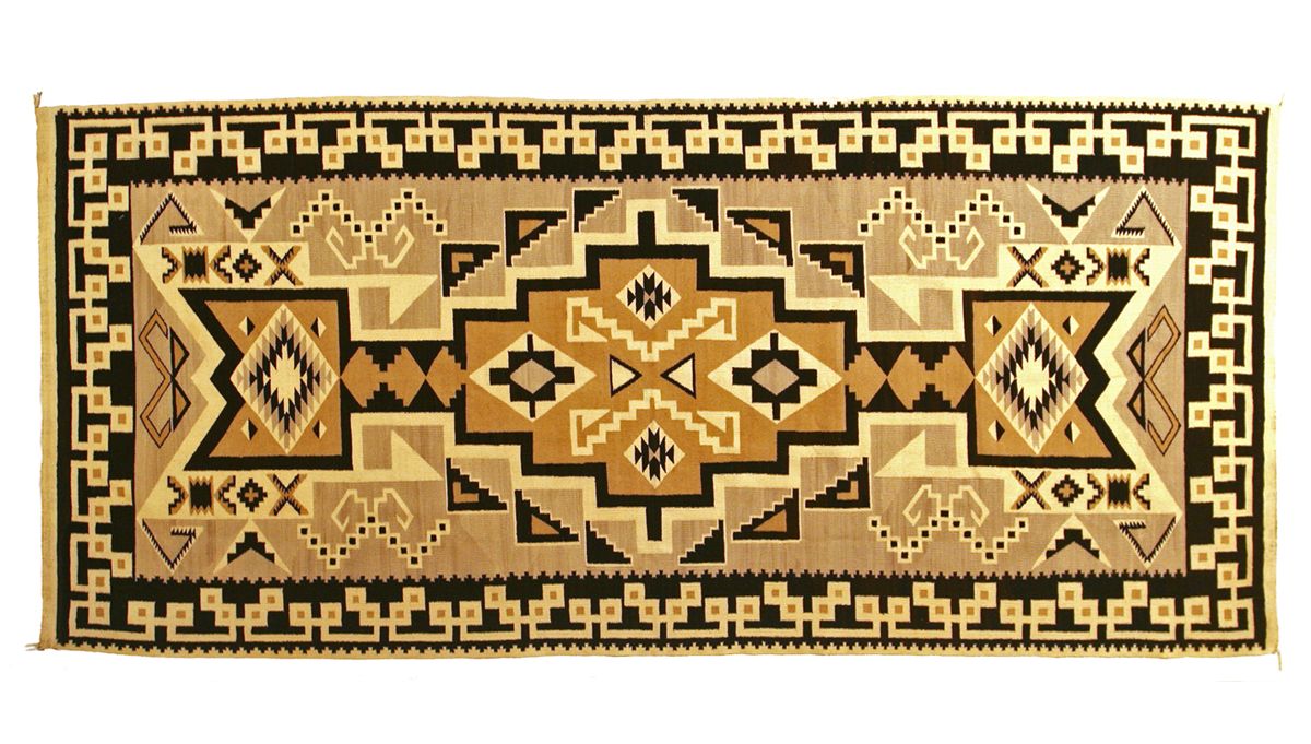 Navajo Weaving. 9'4" x 4'1". Teec Nos Pos. All natural colors. Circa 1930s.