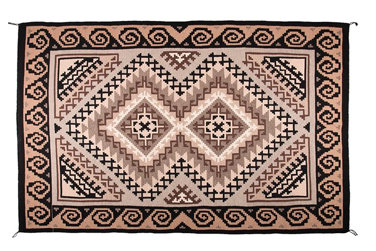 Navajo Weaving. 9'4" x 6'3". Two Grey Hills. A beautiful example of the highly detailed and intricate designs these weavers are known for. Circa 1960's.