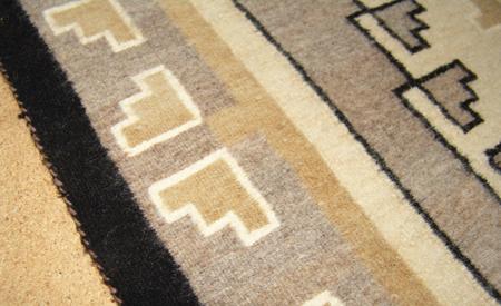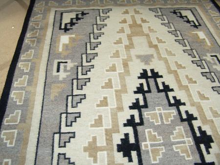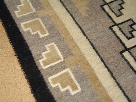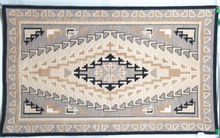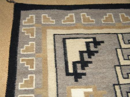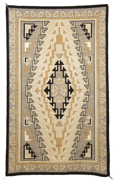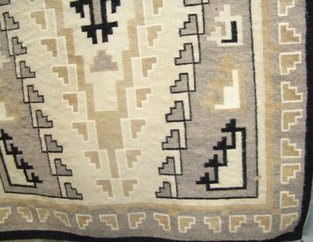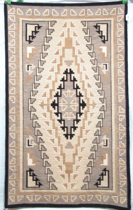 Very finely woven Two Gray Hills rug done in traditional natural earth tones. Purchased from Foutz in 1974 for $4,000; appraisal value $4,500. Condition: excellent. 37" x 64"