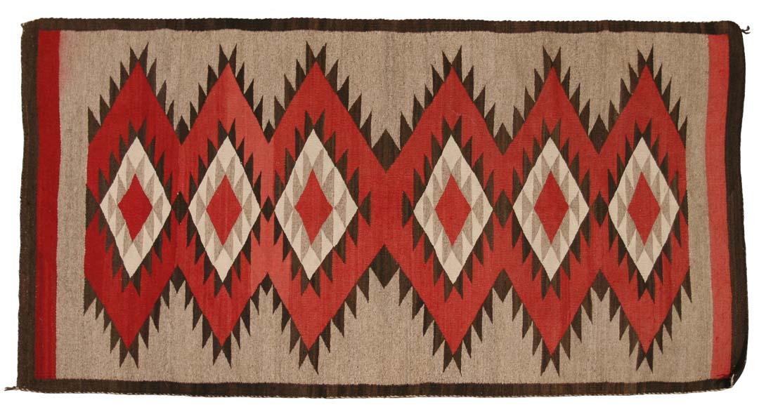 Navajo Weaving. 70" x 36". Circa 1930s. (est $800-1,200). For condition reports please visit: www.auctioninsantafe.com/cr2011.pdf