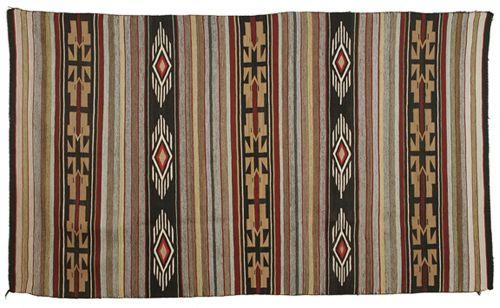 Navajo Weaving. Crystal Area. 5 feet 8" x 9 feet 10". Intricate design elements on rare black background. c. 1940s. Pristine condition. (est $4,000-6,000).