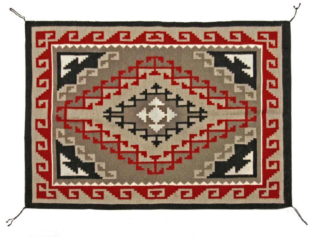 Navajo Weaving. 53" x 37 ½". Woven by Nettie Young in 1995. Crownpoint Rug Weavers tags attached. (est $600-800). For condition reports please visit: www.auctioninsantafe.com/cr2011.pdf