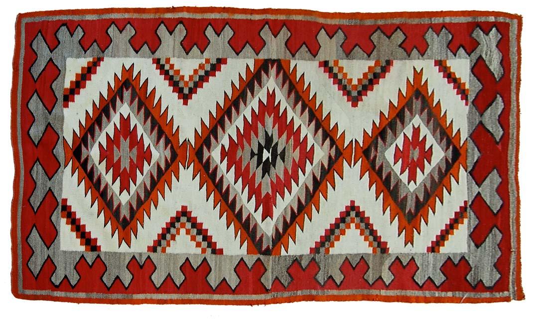 Navajo Weaving. 78" x 46". Red Mesa area. Circa 1910. (est $1,200-1,500). For condition reports please visit: www.auctioninsantafe.com/cr2011.pdf