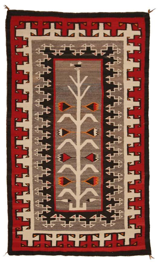 Navajo Weaving. 71" x 42". Exceptional Red Mesa Tree of Life. Circa 1930s. (est $800-1,600). For condition reports please visit: www.auctioninsantafe.com/cr2011.pdf