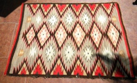 Navajo Chrystal Weaving 52 x 39 inches, Circa 1920's. Condition - some minor whipping loss on the edge and a couple of stains, slight unraveling at one end. Shipping $20.00