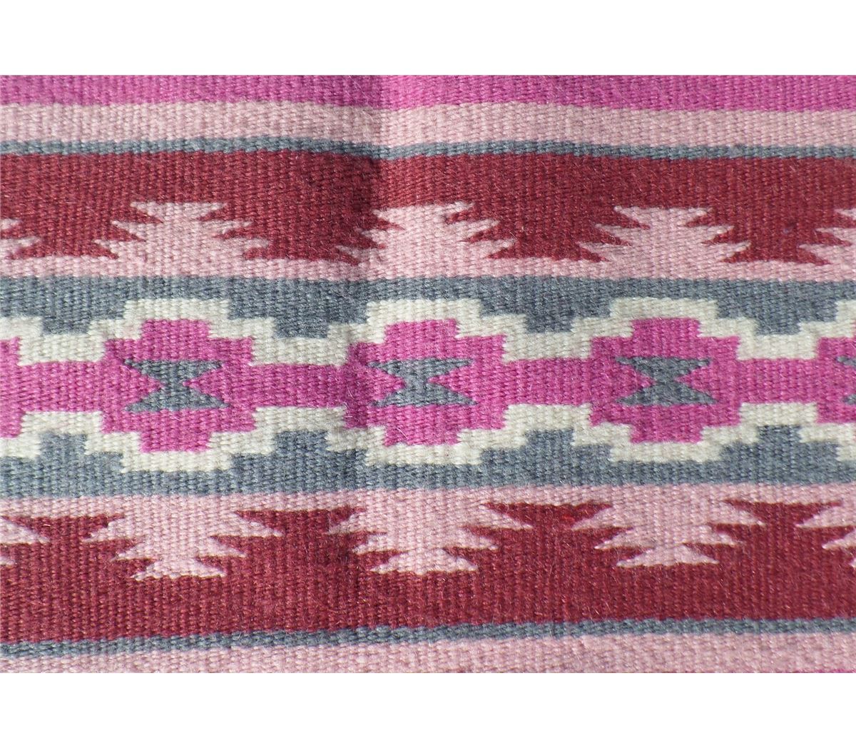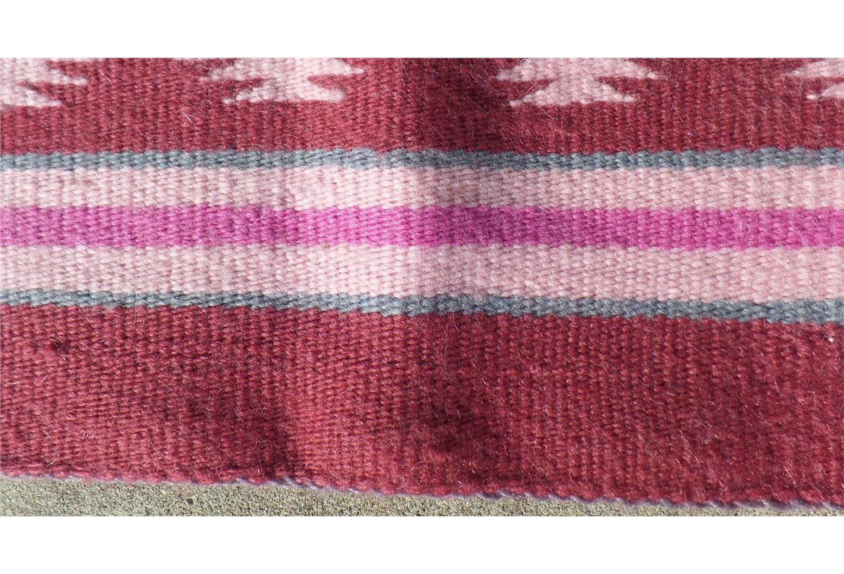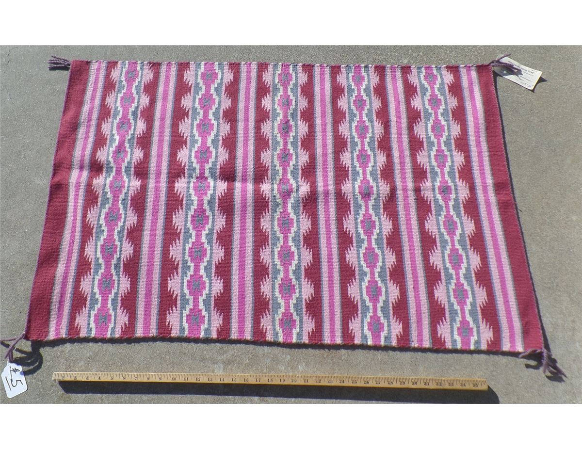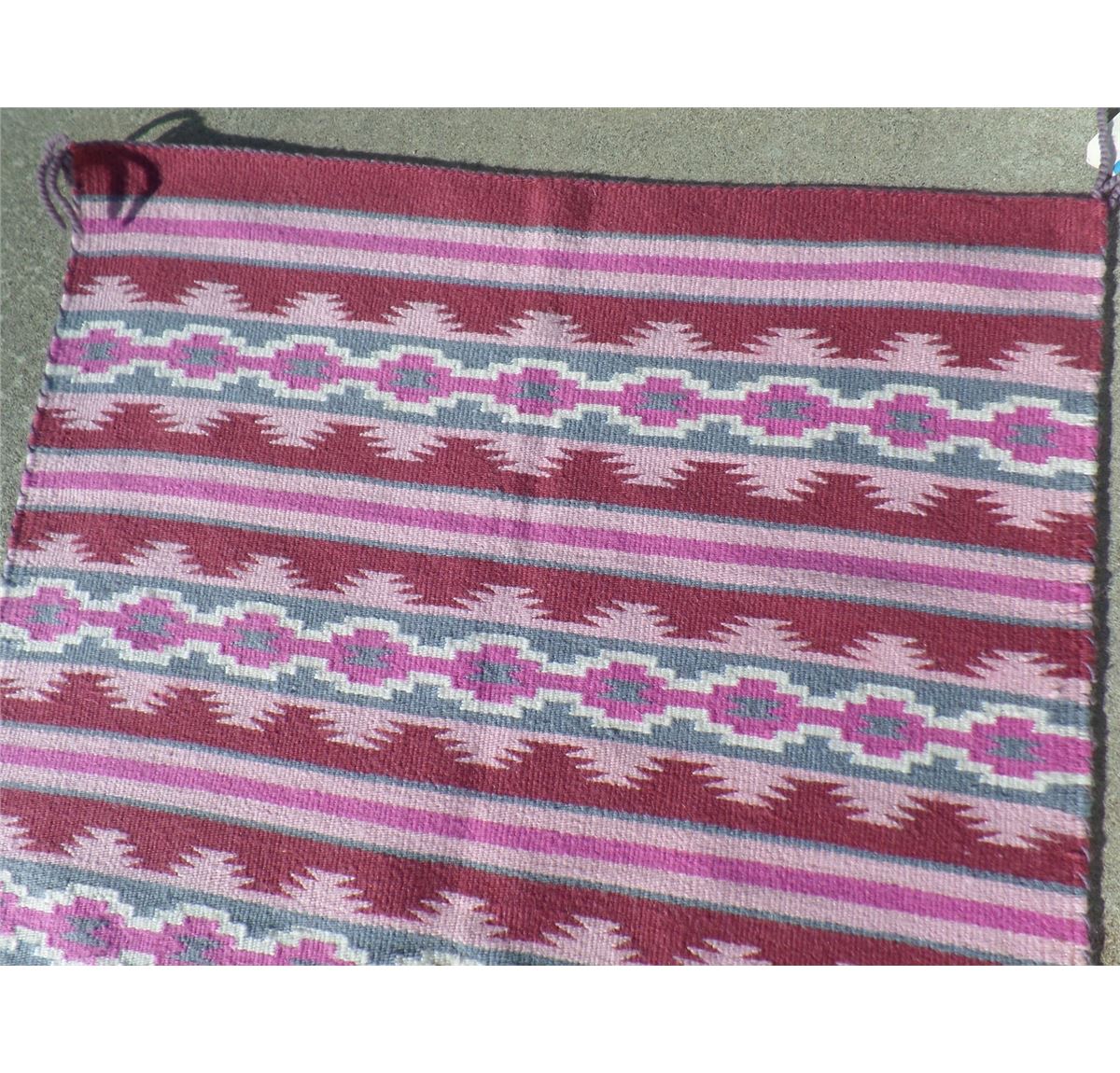 Navajo weaving from the 1950's which measures 28 x 43 inches. The weaver is Barb Yazzie and rug still has original tag from Indian ruins Indian Store. This item is from Sanders, Arizona. Condition: Great investment quality rug with one broken string on one corner. Shipping $26.00