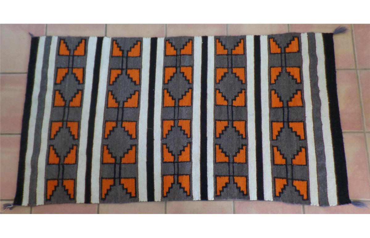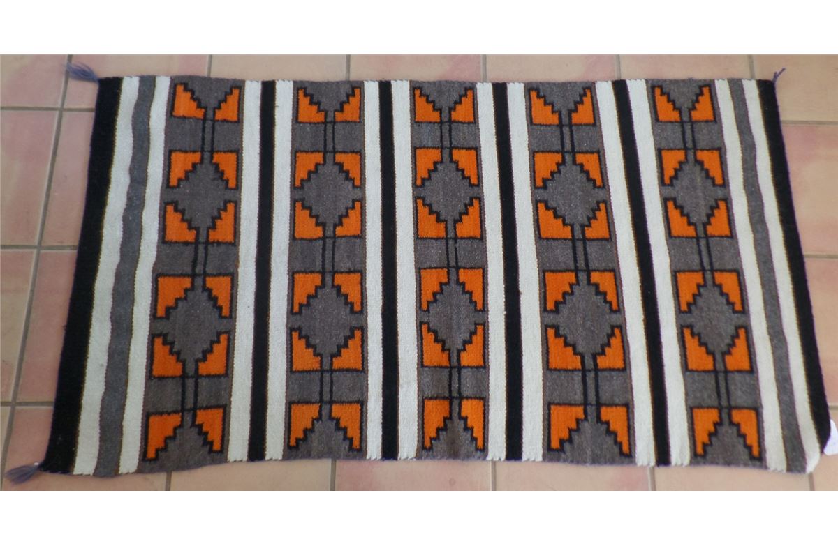 1940's Navajo Weaving made from Wool and measures 59 x 32 inches. It is in very good condition with no visible damage. Shipping: 22.50