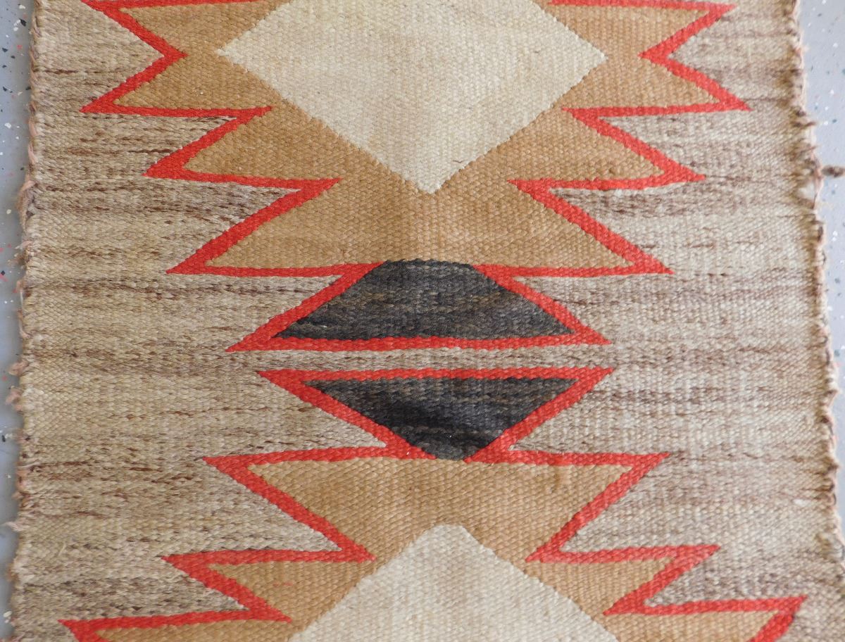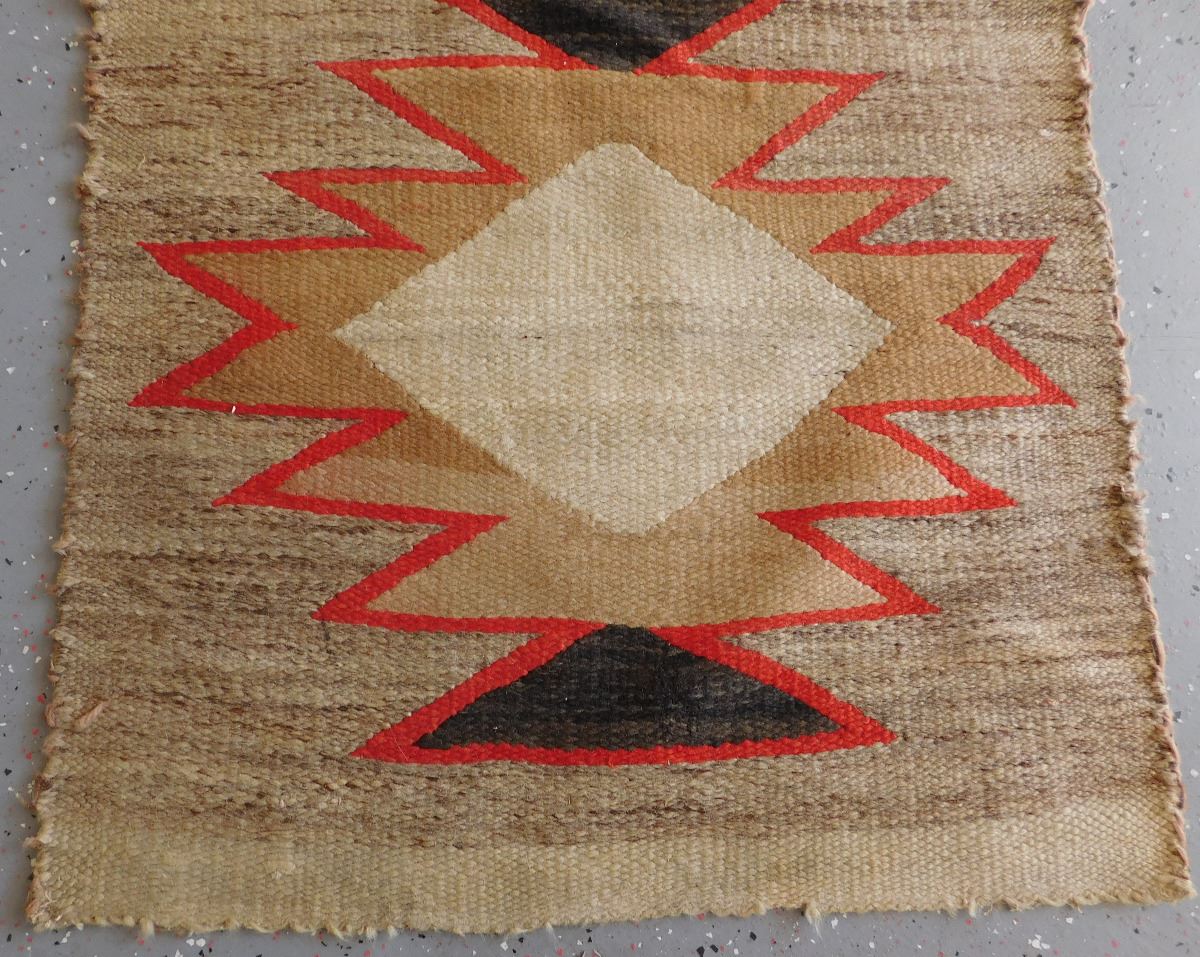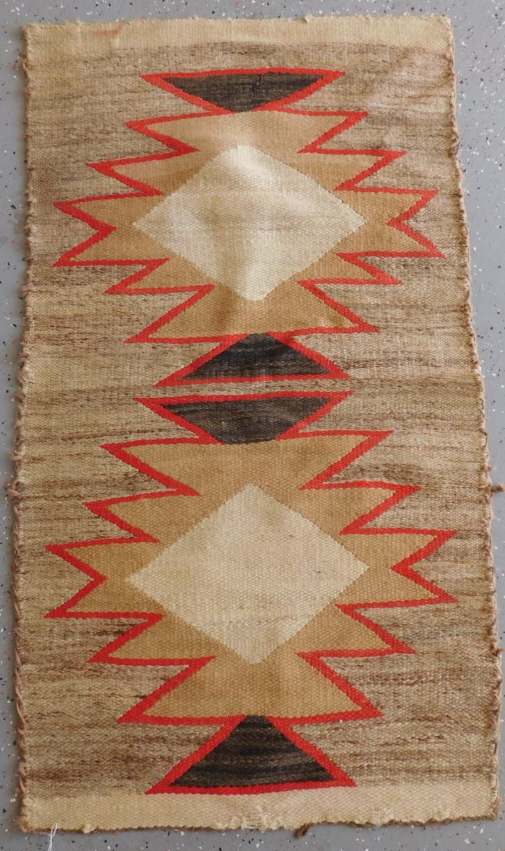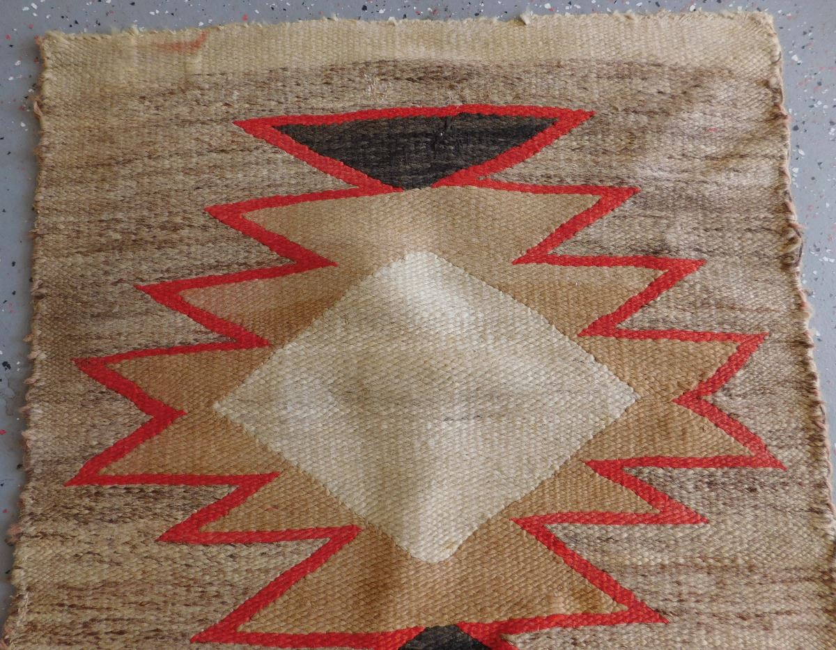Navajo Weaving, circa 1920s. Made of wool and dye, this item measures 40" x 24". From Arizona. Early crystal rug. Condition: Needs cleaning, see images. Shipping: $30.00.