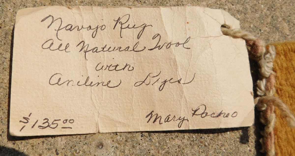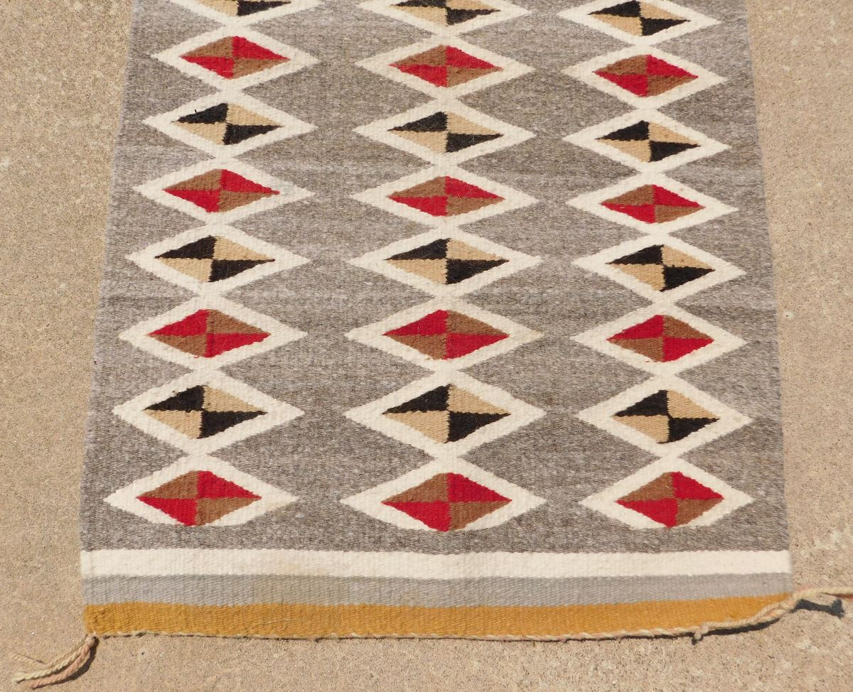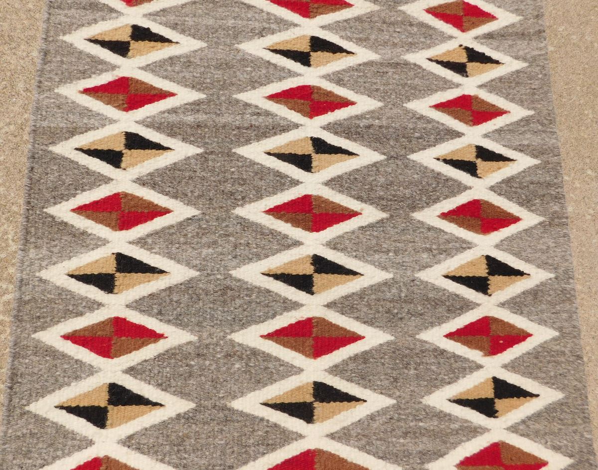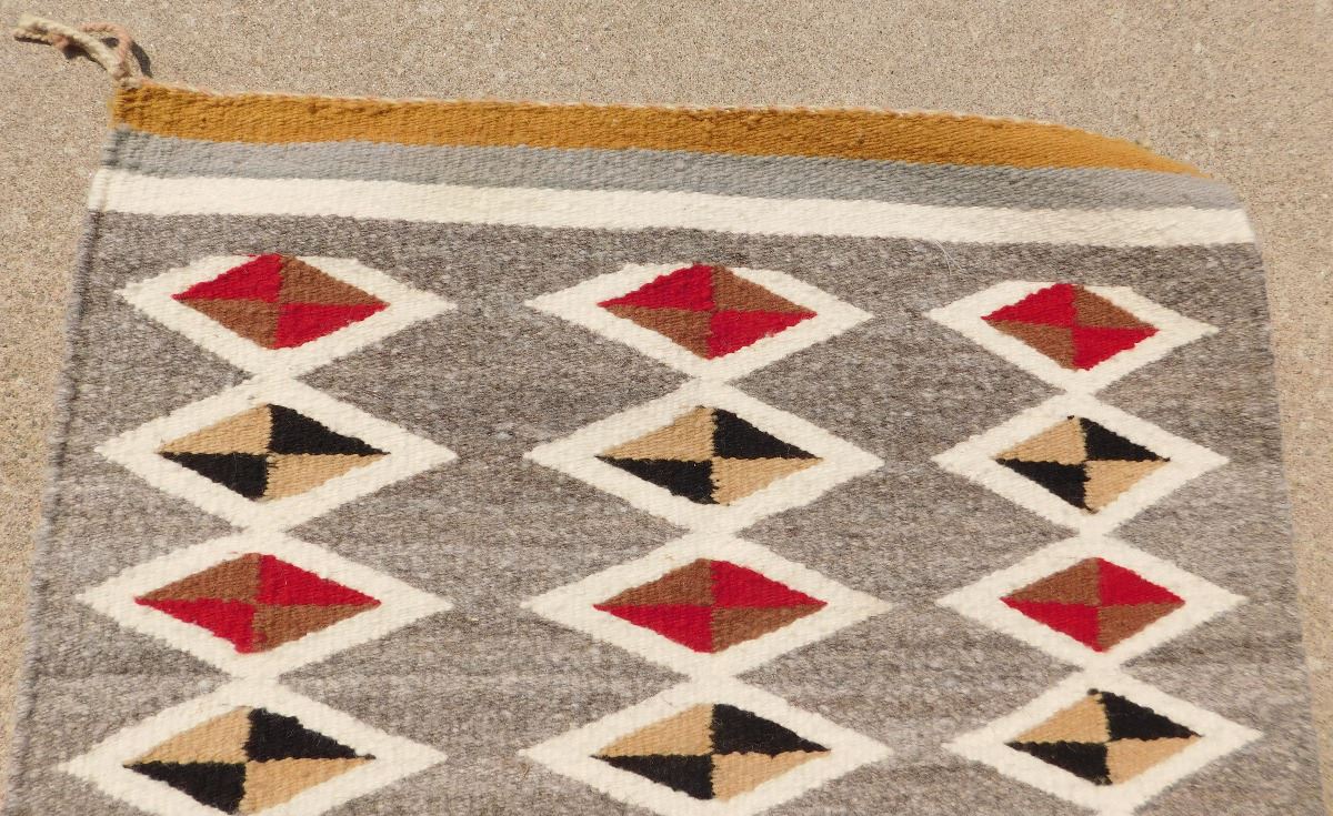 Navajo Weaving, circa 1960s. Made of wool and measuring 37" x 24". Navajo, from New Mexico. Burlingame Gallery. Nice crystal weaving. Conditoin: Good, see images. Shipping: $30.00