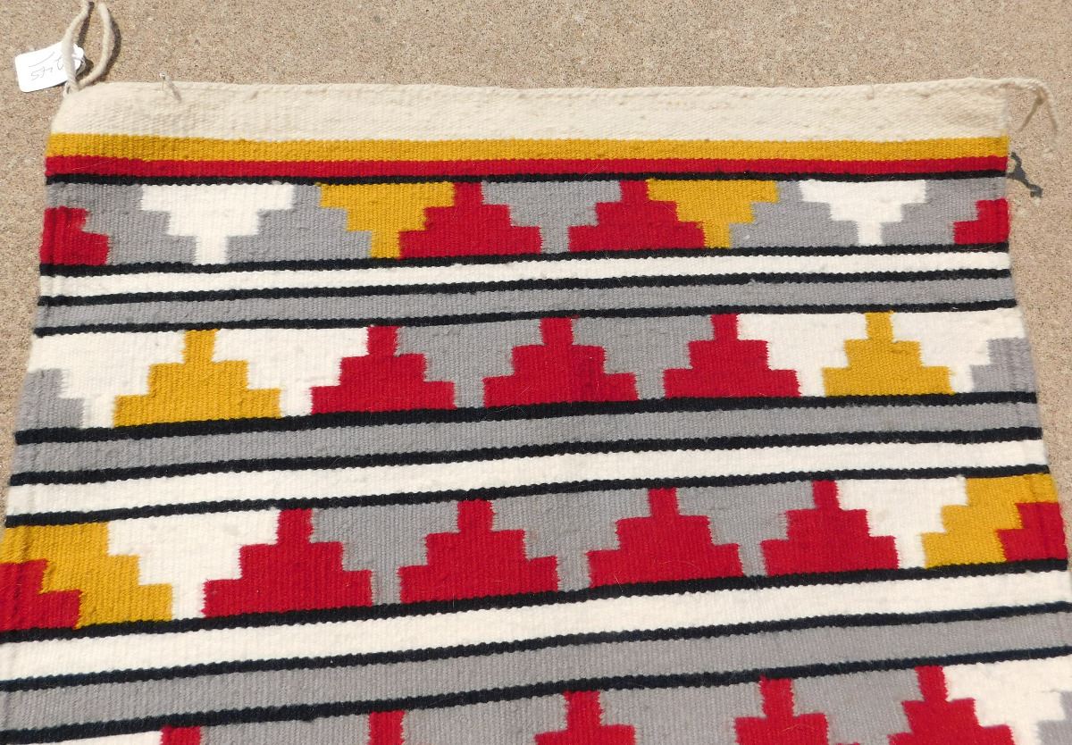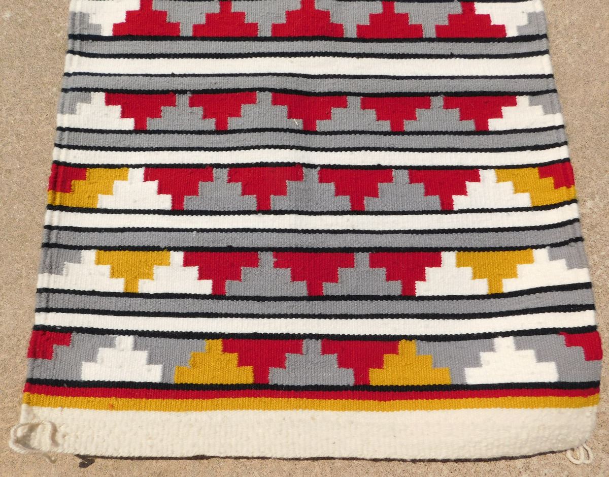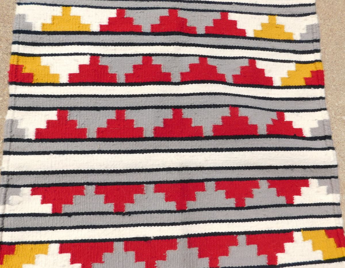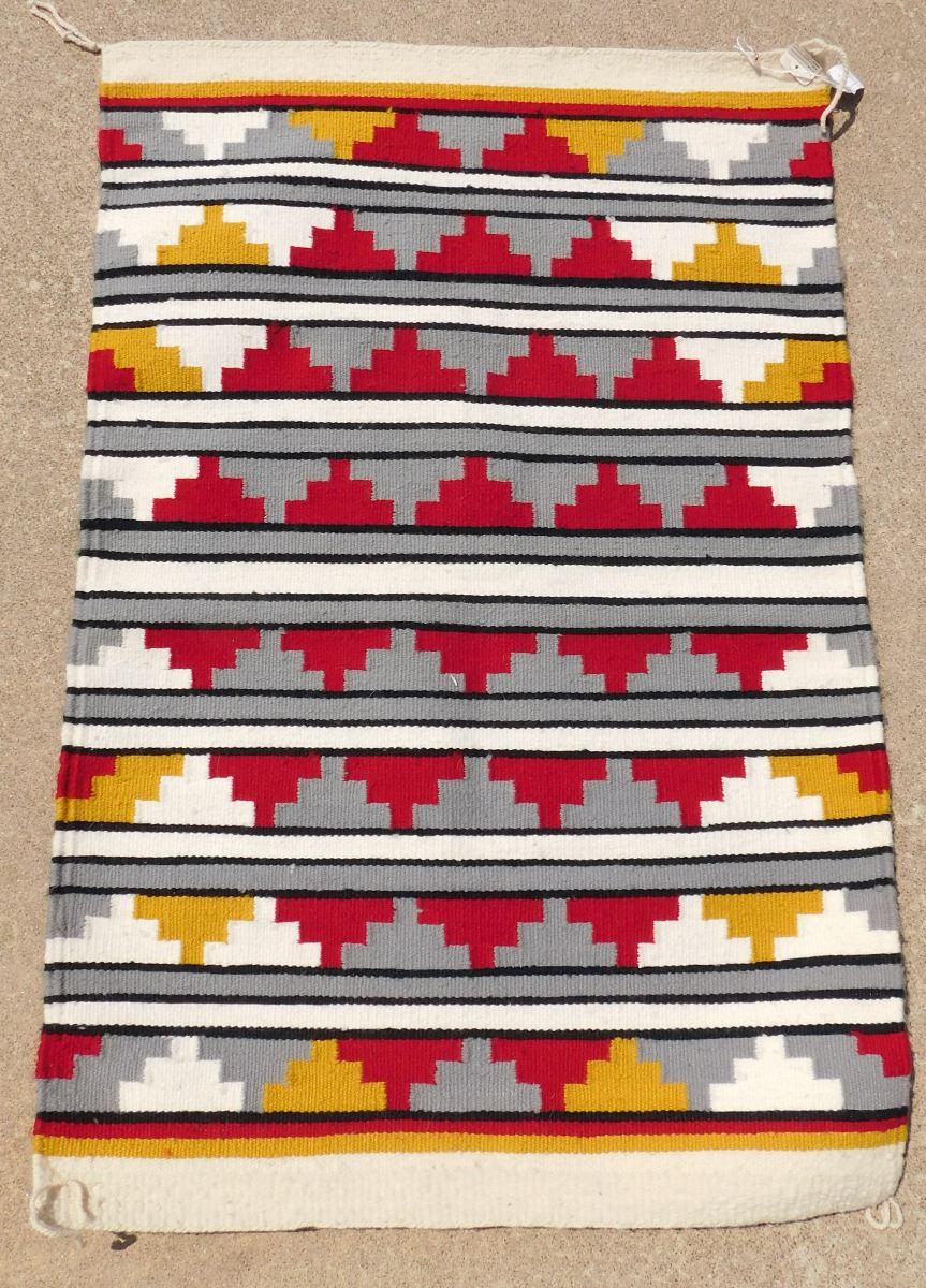 Navajo Weaving, circa 1950s. Made of wool and measuring 36" x 24". Navajo, wide ruins rug. Condition: Very good, see images. Shipping: $25.00.