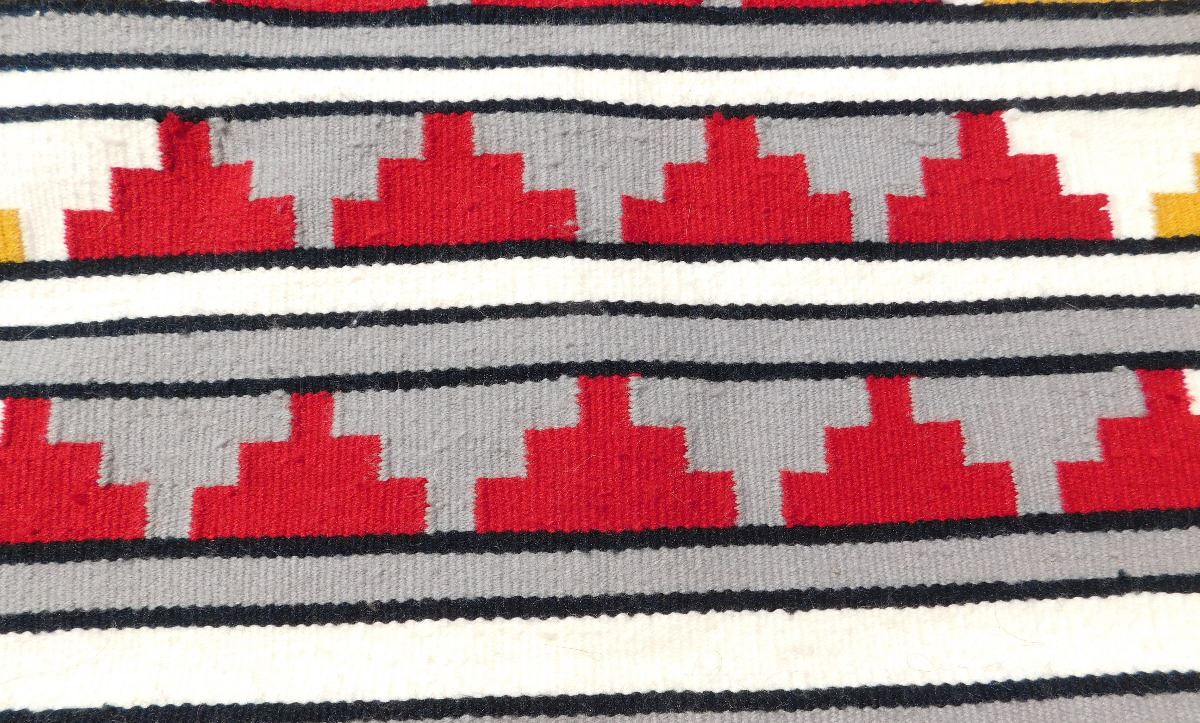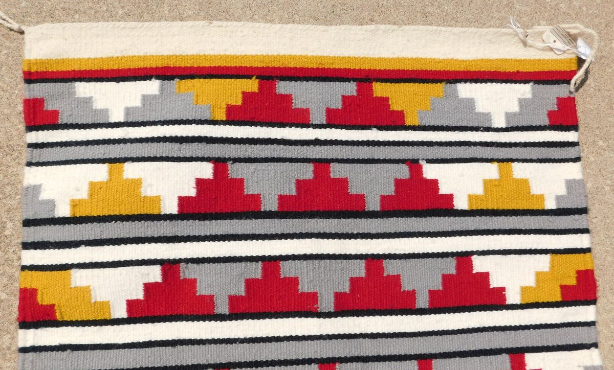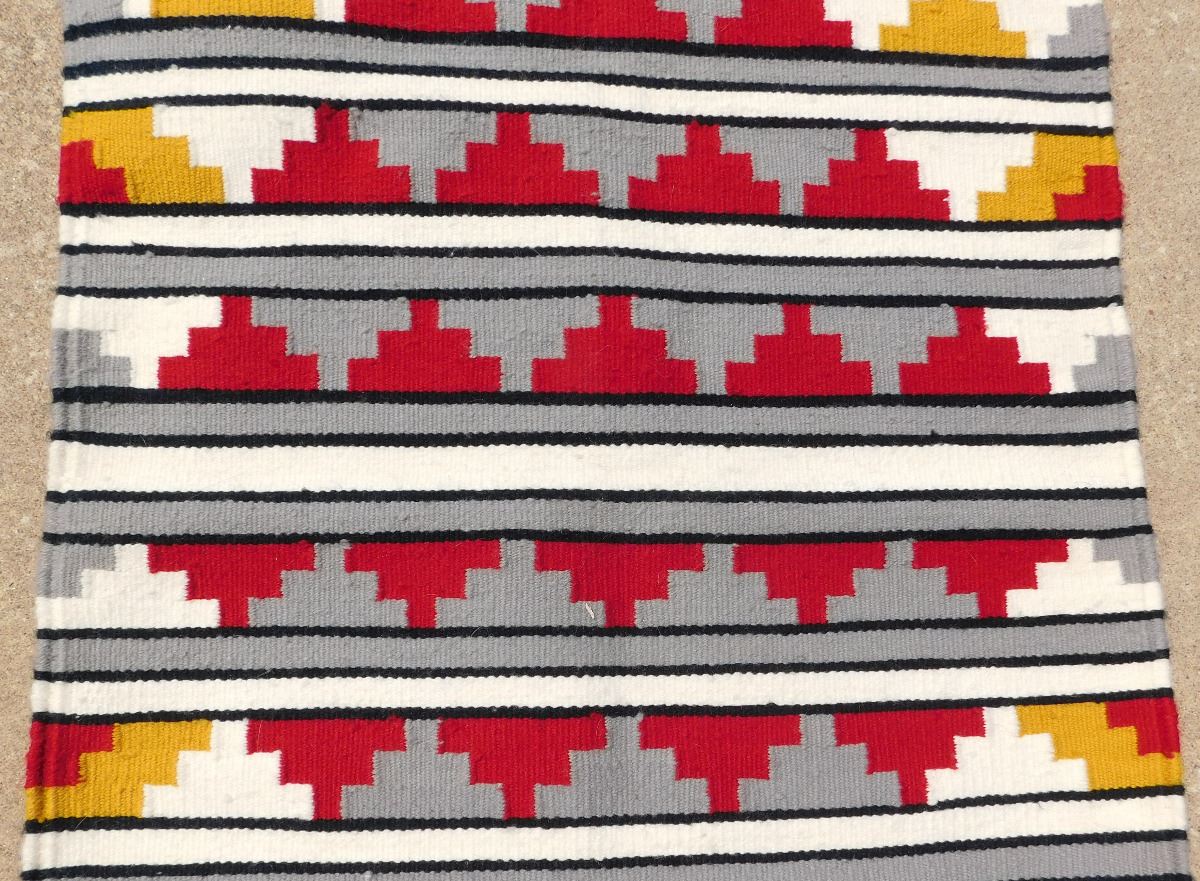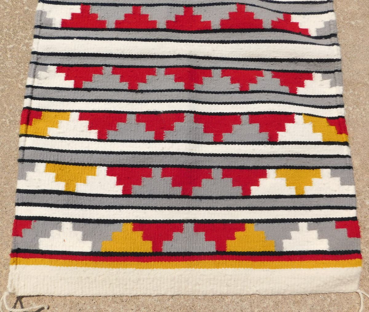 Navajo Weaving, circa 1950s. Made of wool and measuring 36" x 24". Navajo, wide ruins rug. Condition: Very good, see images. Shipping: $25.00.