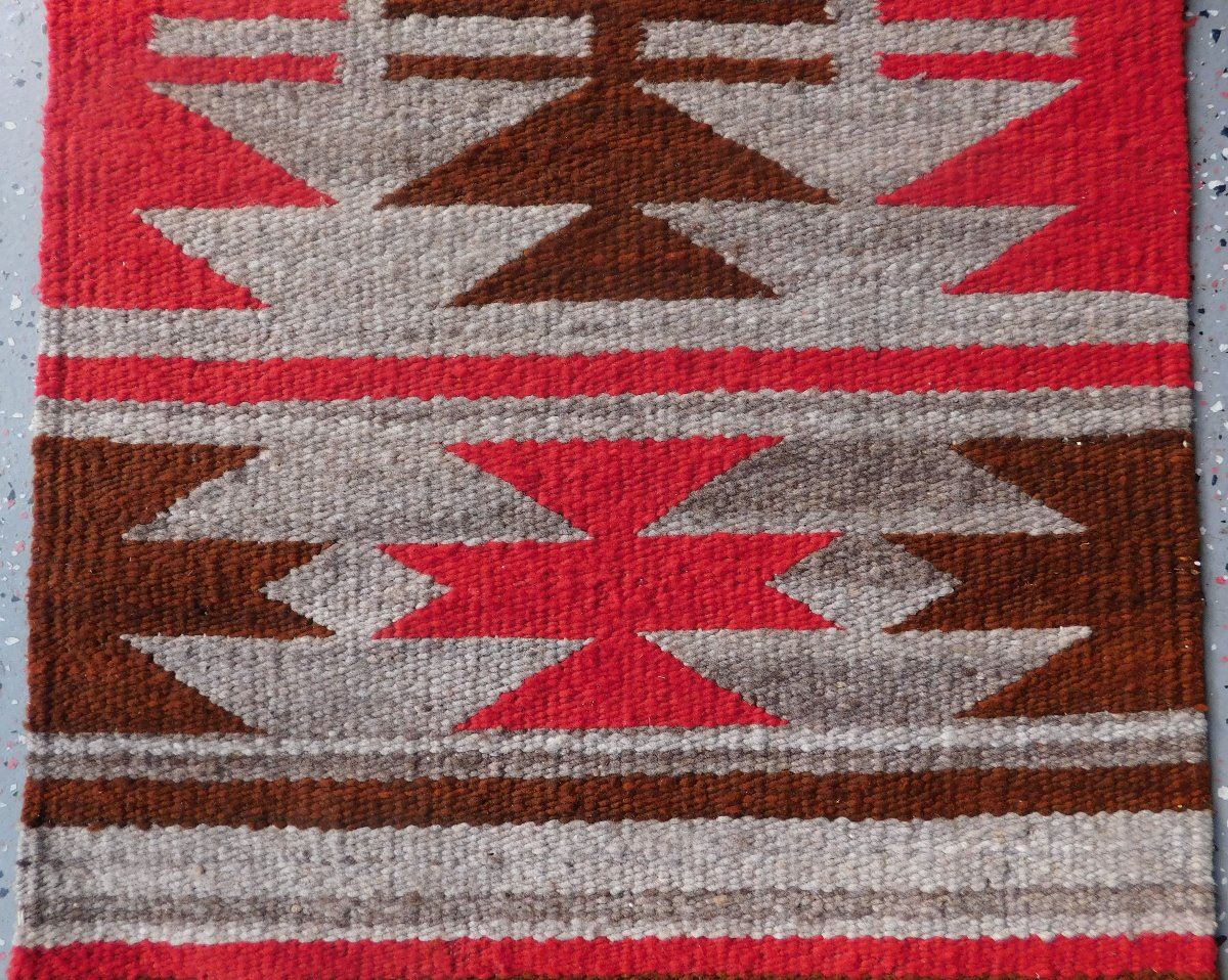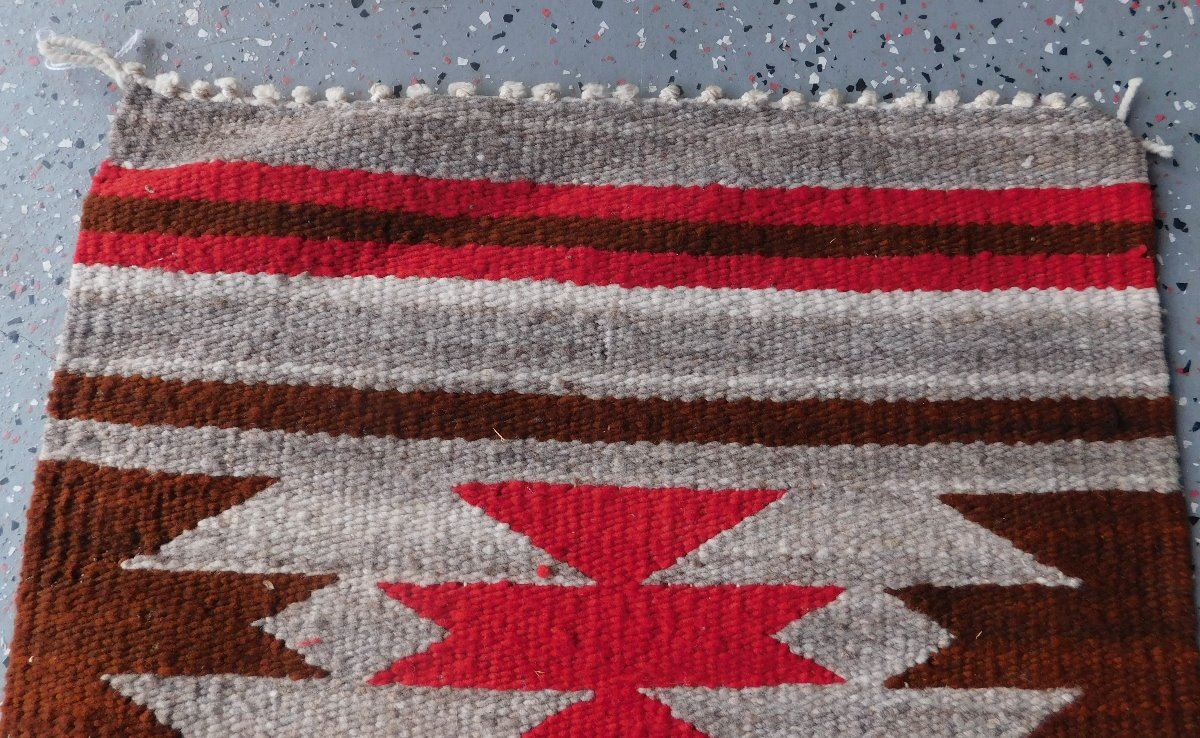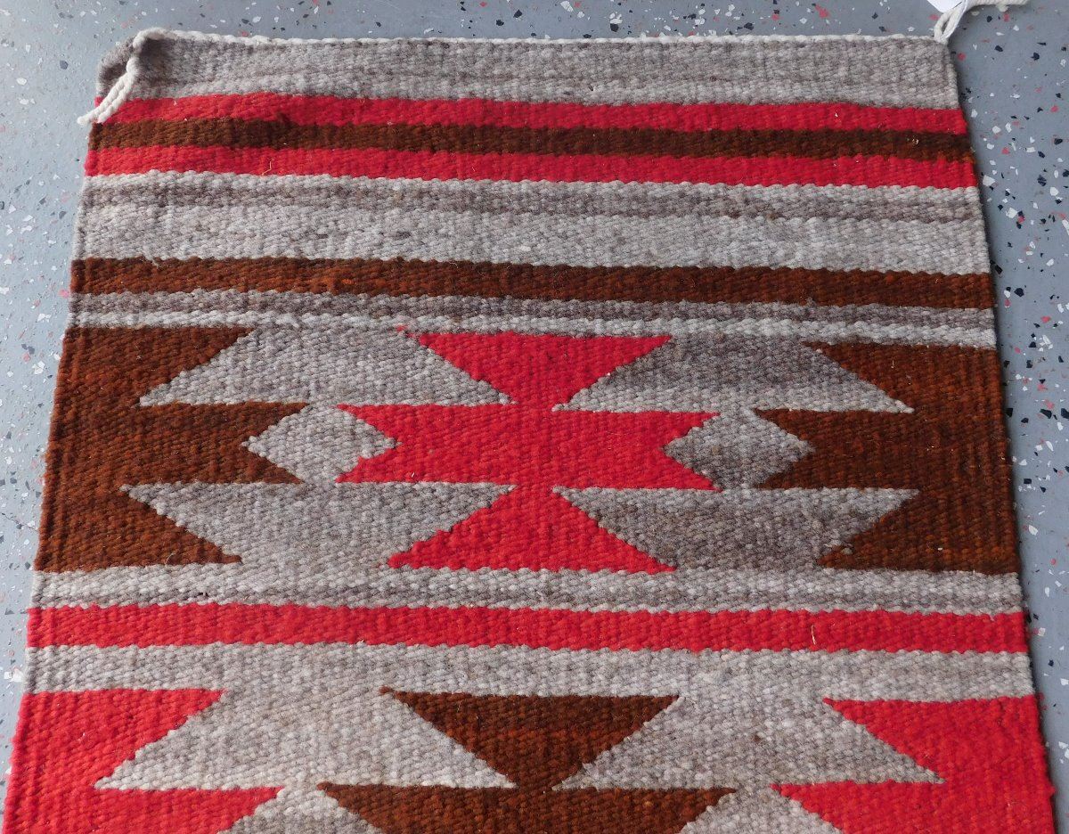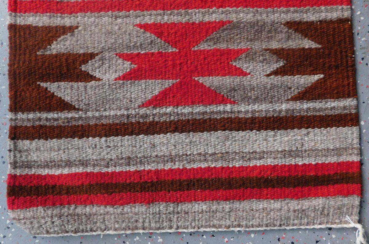 Navajo Weaving, circa 1940s. Made of wool, the item measures 36" x 18". Gallup, New Mexico. Nice looking saddle blanket. Condition: Good, see photos. Shipping: $22.50 w/insurance and signature.