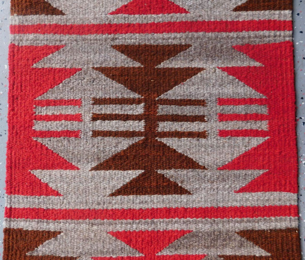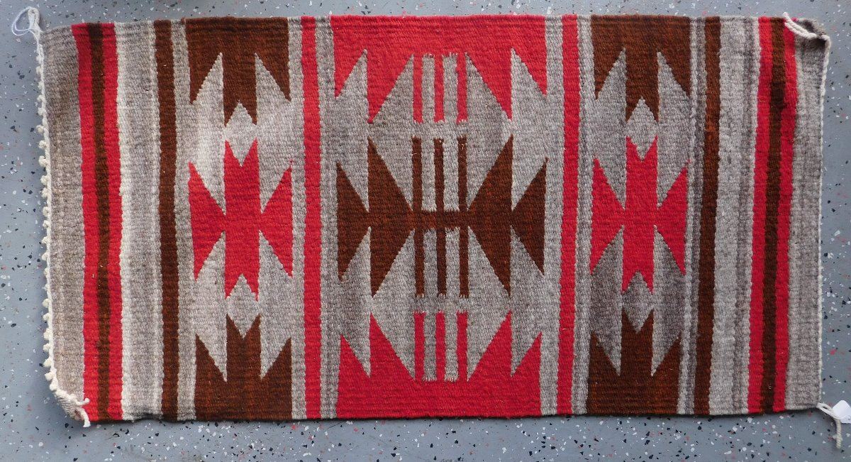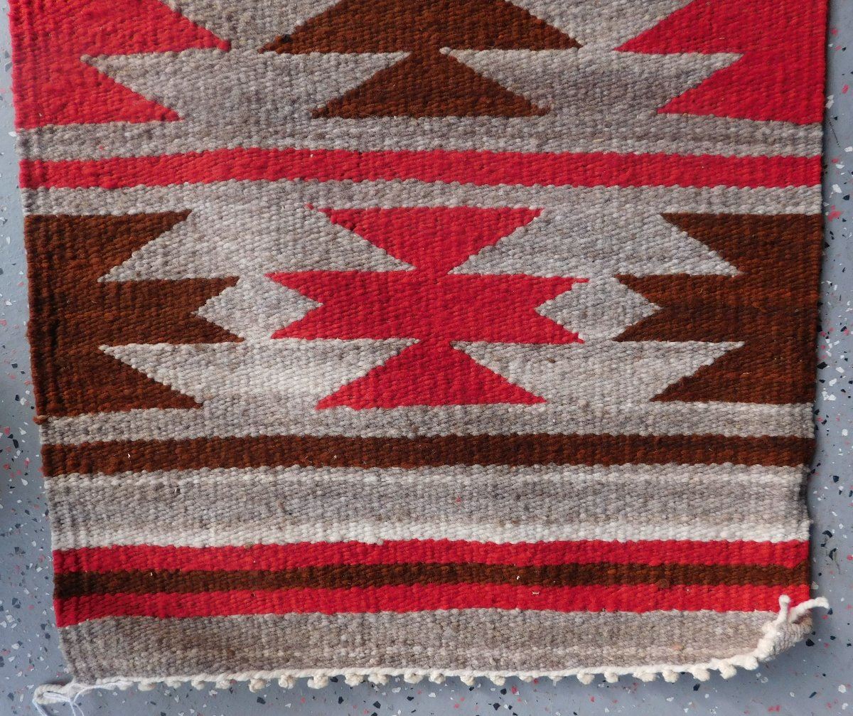 Navajo Weaving, circa 1940s. Made of wool, the item measures 36" x 18". Gallup, New Mexico. Nice looking saddle blanket. Condition: Good, see photos. Shipping: $22.50 w/insurance and signature.