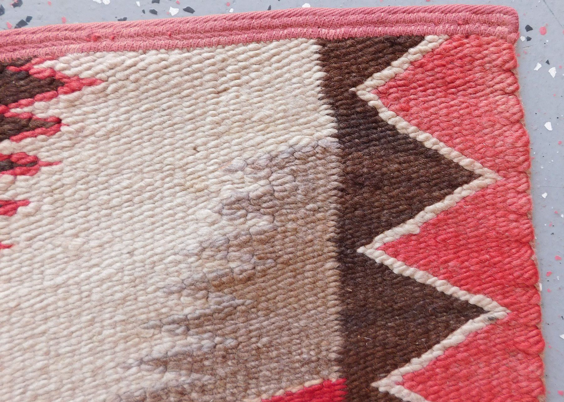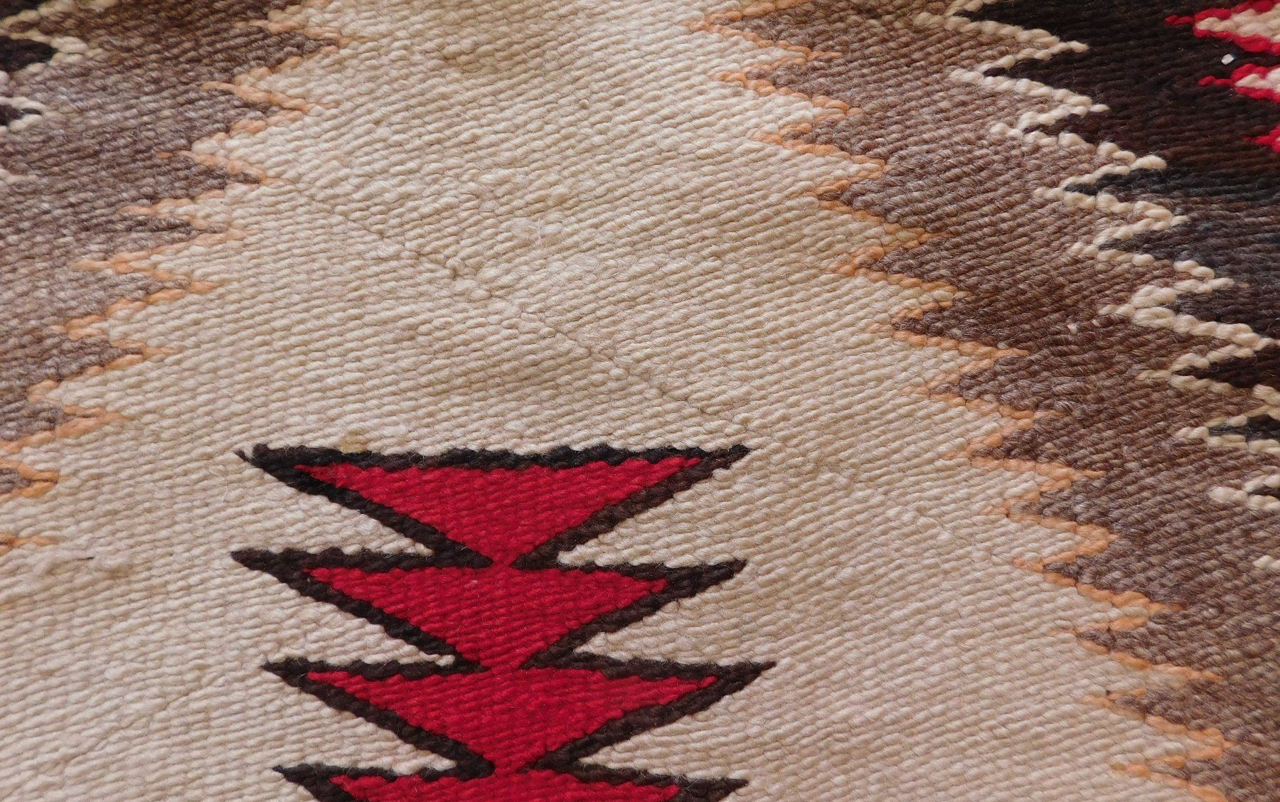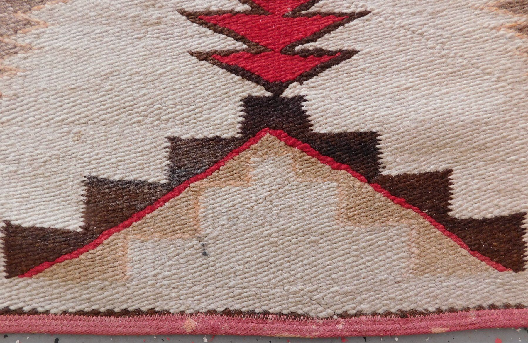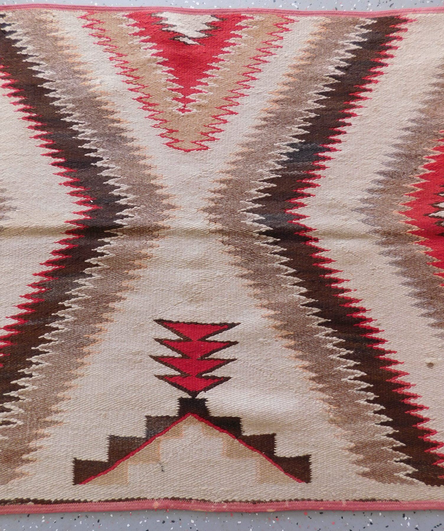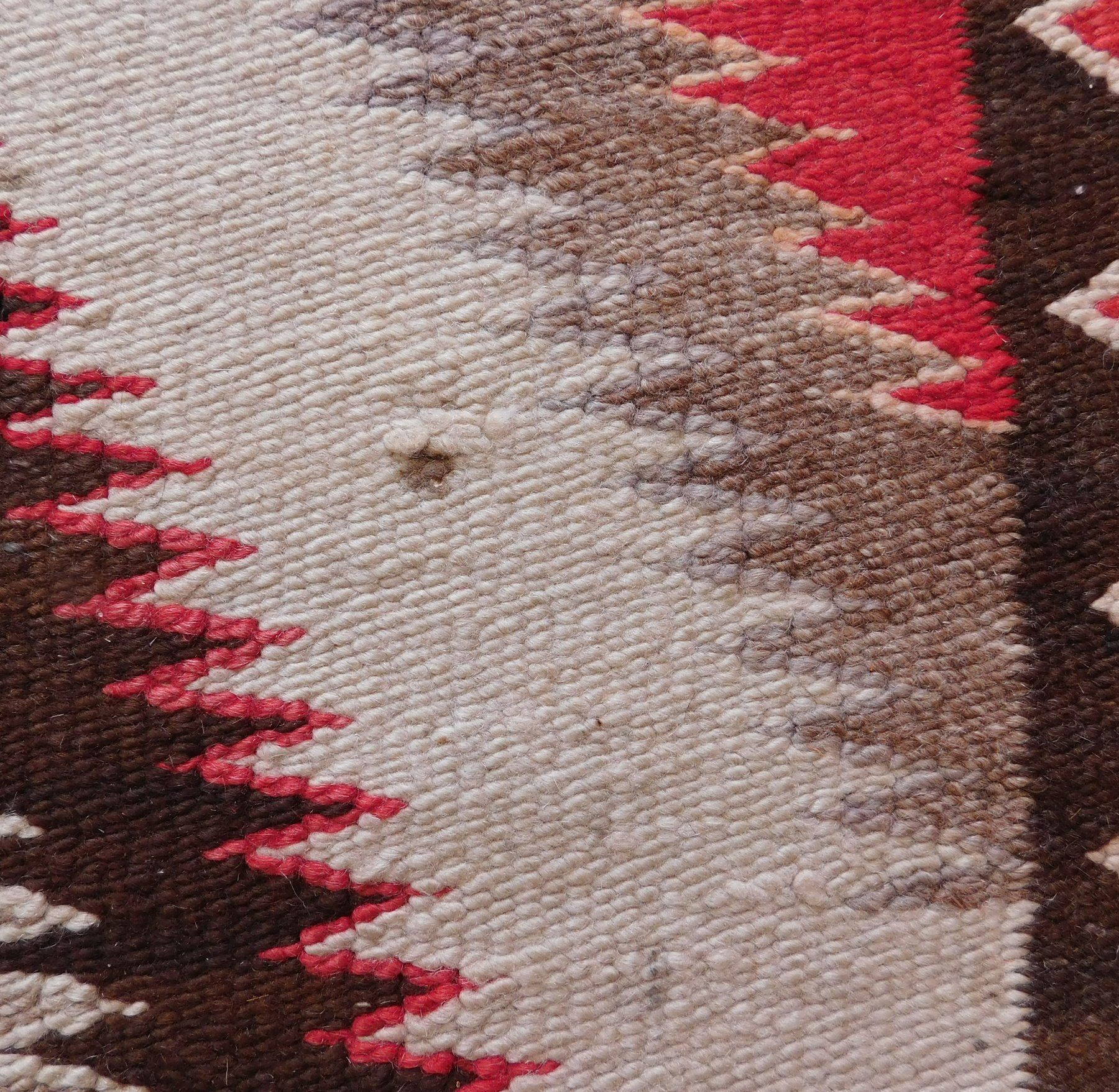 Navajo Weaving, c. 1940s. Made of wool and dye, the item measures 45.5" x 32.5". Navajo. Lazy Lines, tight weave. Condition: Good, minor wear and staining, see images. Shipping: $22.50 w/insurance and signature.