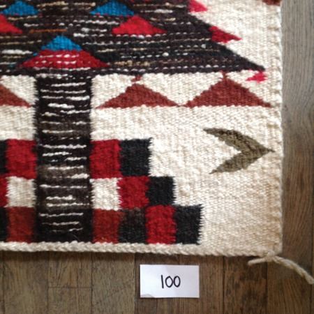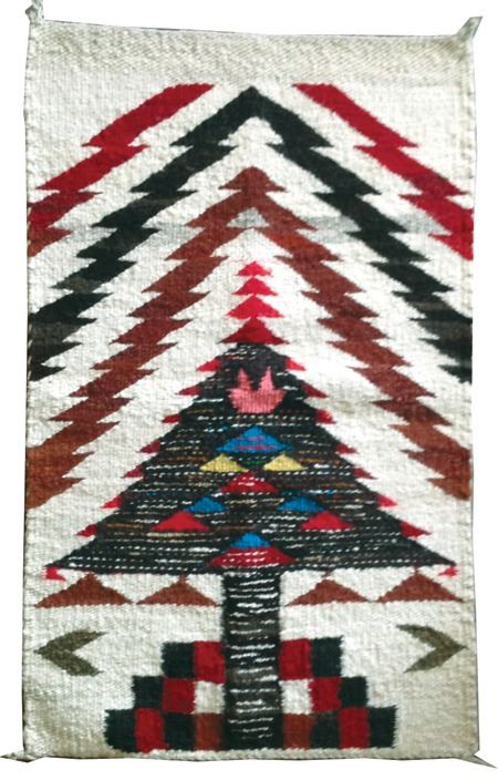 Ca. 1960s, Hand spun wool rug with rare Christmas tree design. Very good condition. 35" x 22"