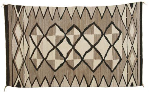 Navajo Weaving. 43" x 73". Natural colors. Interesting center design. 1920s. Fine condition. (est $750-1,000).
