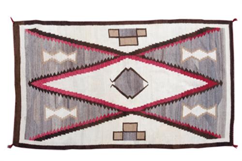 Navajo Weaving. Crystal Area. 84" x 49". Native Churro wool. Uncommon fish motif. (est $1,500-2,500)