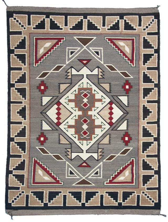 Mid 1900s, Fine old hand loomed Teec Nos Pos rug with strong pattern and colors. 51" x 69"