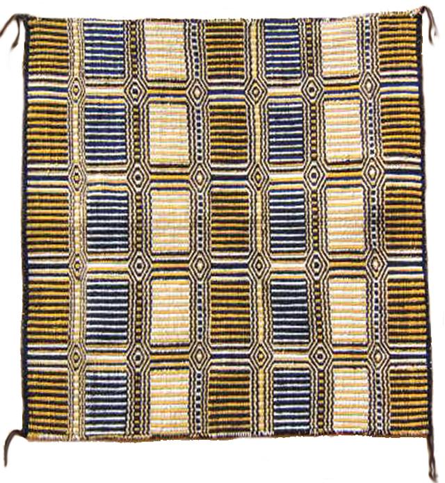 Circa 1970s, Pan Reservation double weave rug, each side different. 36" x 34"