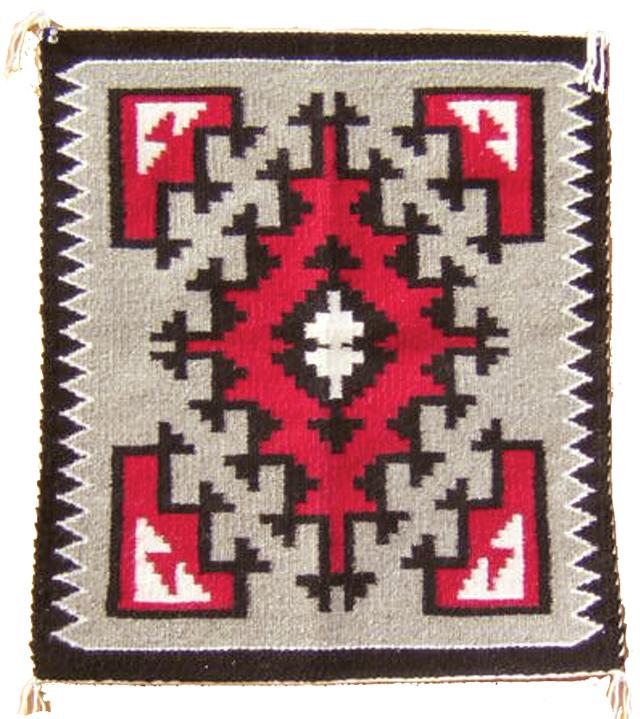 Circa 1970s, Sherwin Jim, Classic Ganado weaving in red, gray, black, and white. 22" x 24"