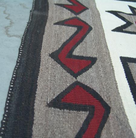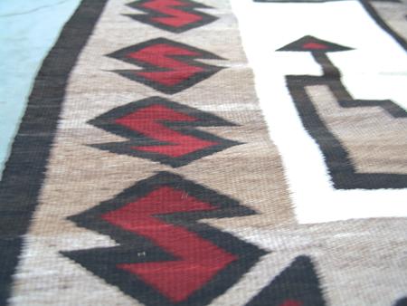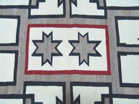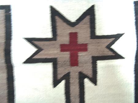 Outstanding tight weave crystal rug with valero stars, crosses, arrows, and other crisp striking designs. Condition: very good. 70" x 56"