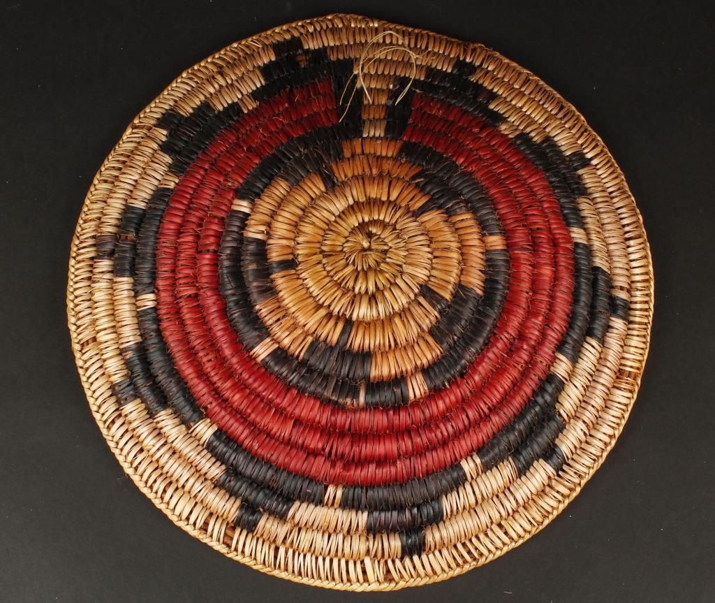 Black and red dyed. Circa 1950's. 2-1/2" high x 11" diameter. In overall good condition.