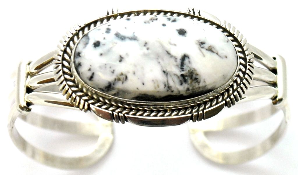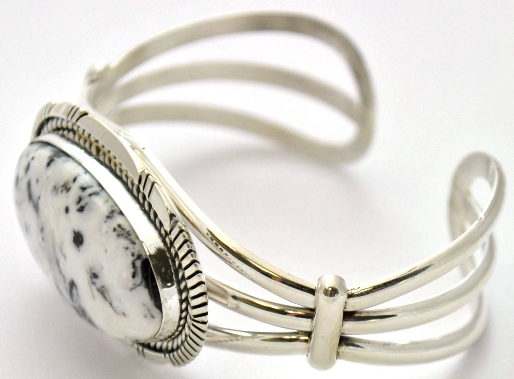 Navajo White Buffalo Sterling Silver Cuff Bracelet - Eugene Belone