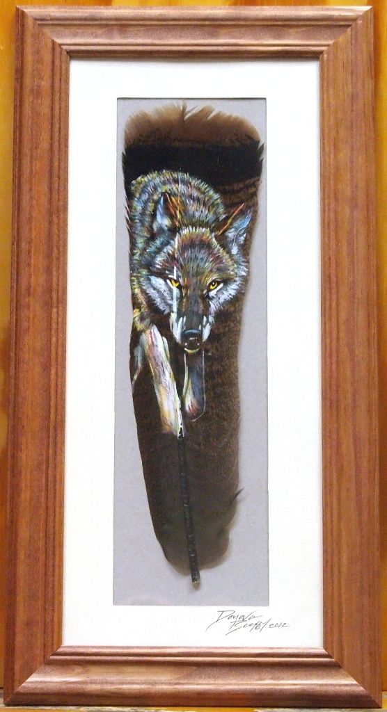 Frame measures 18-1/2" tall by 9-1/2" wide. Feather measures 12-3/4" tall by 4" wide.