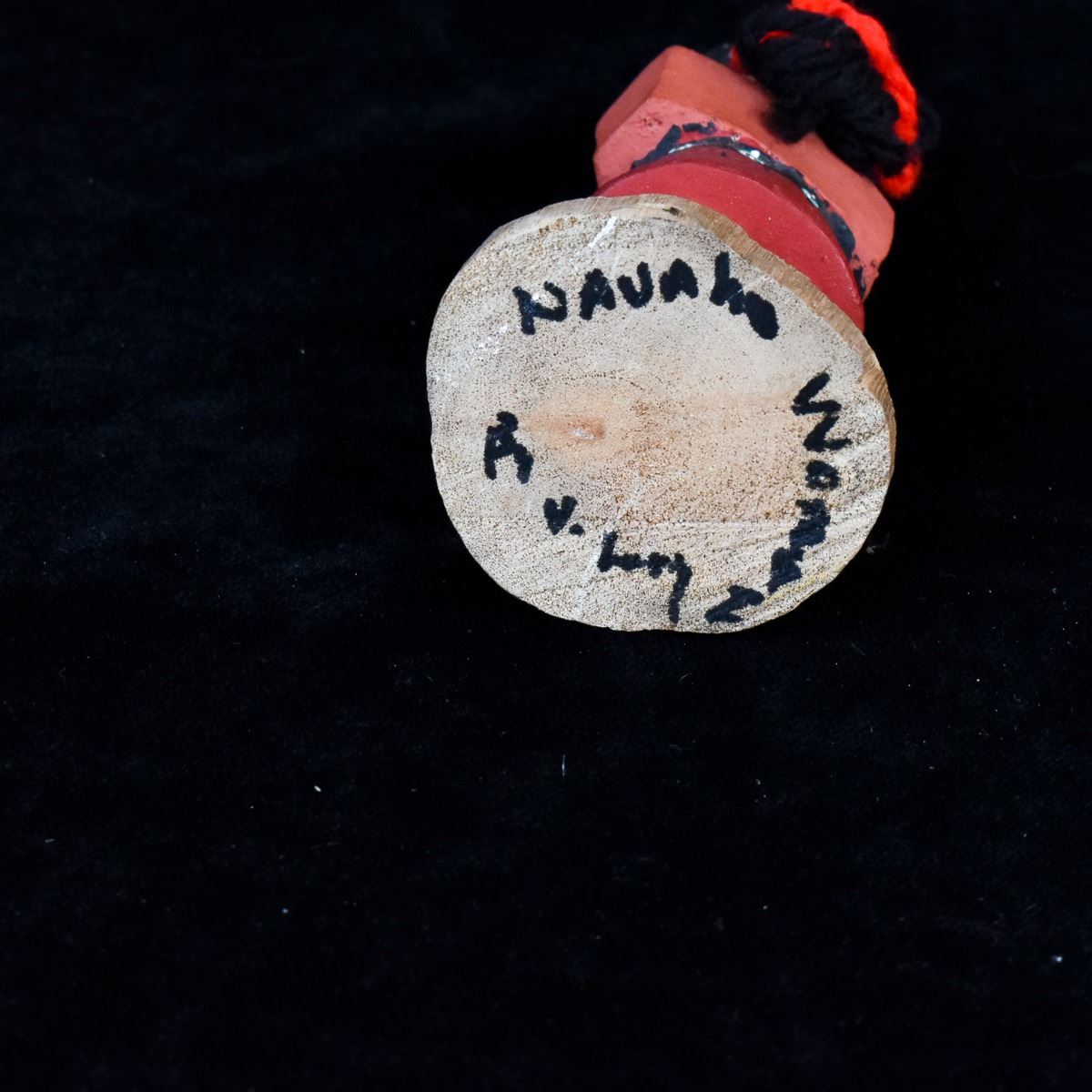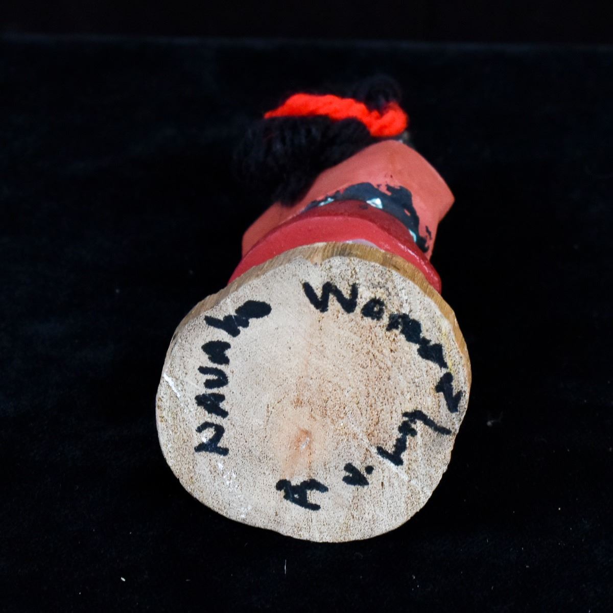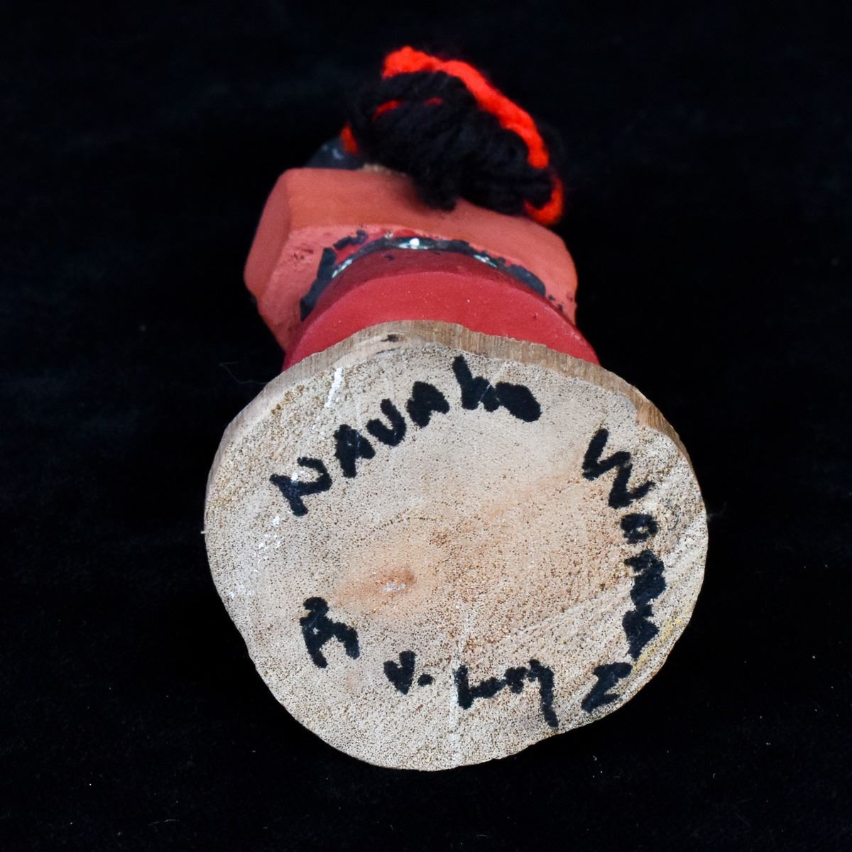 Native American Navajo Woman Kachina Doll by Navajo artist V. Long, measures 1.5'' x 4'' and is signed on the bottom
