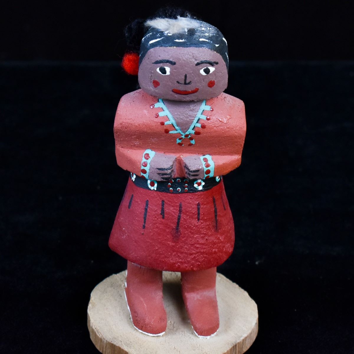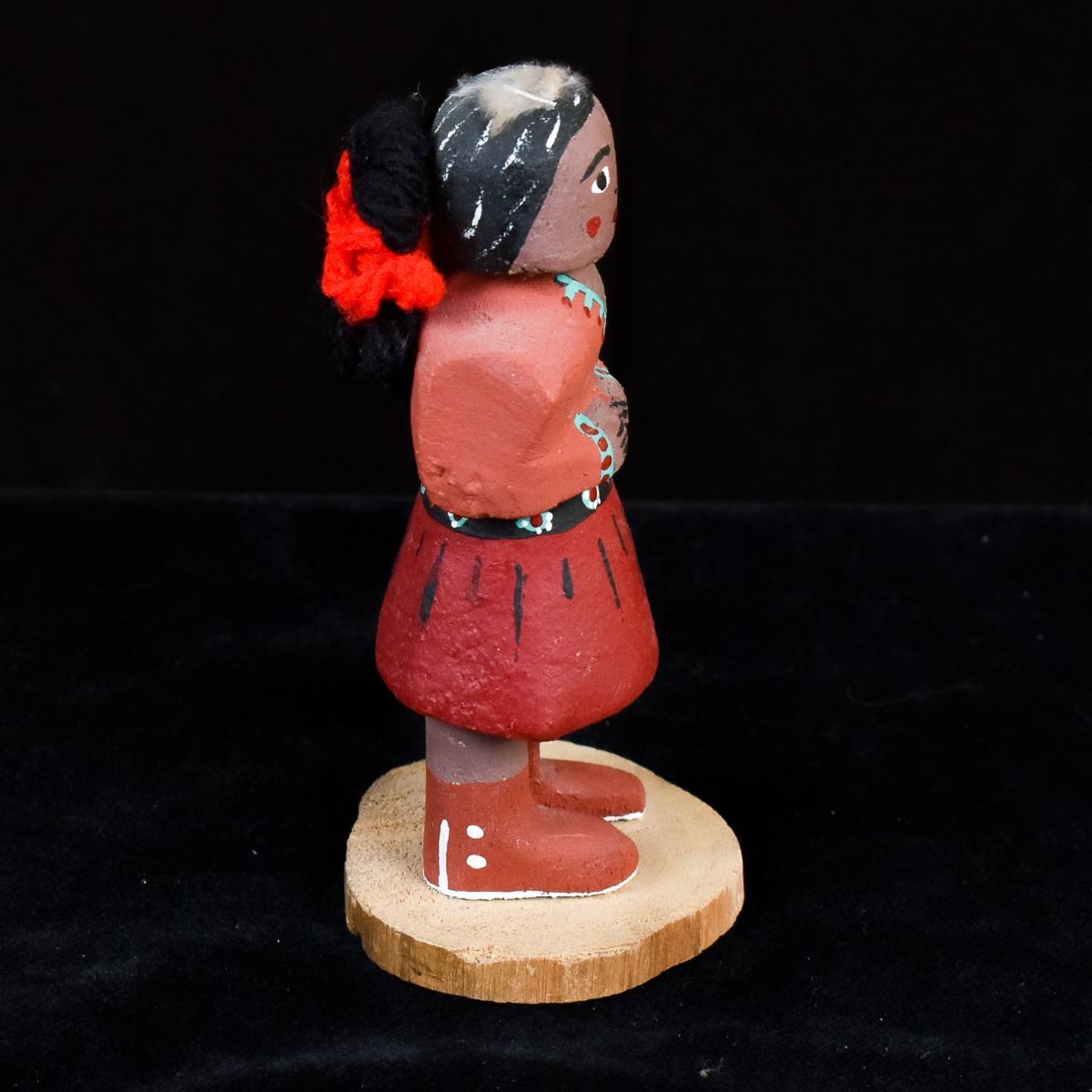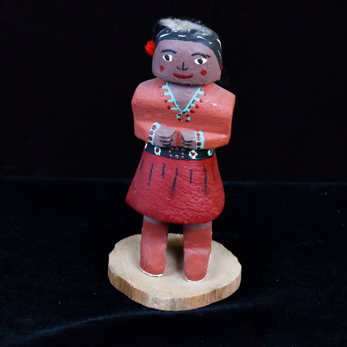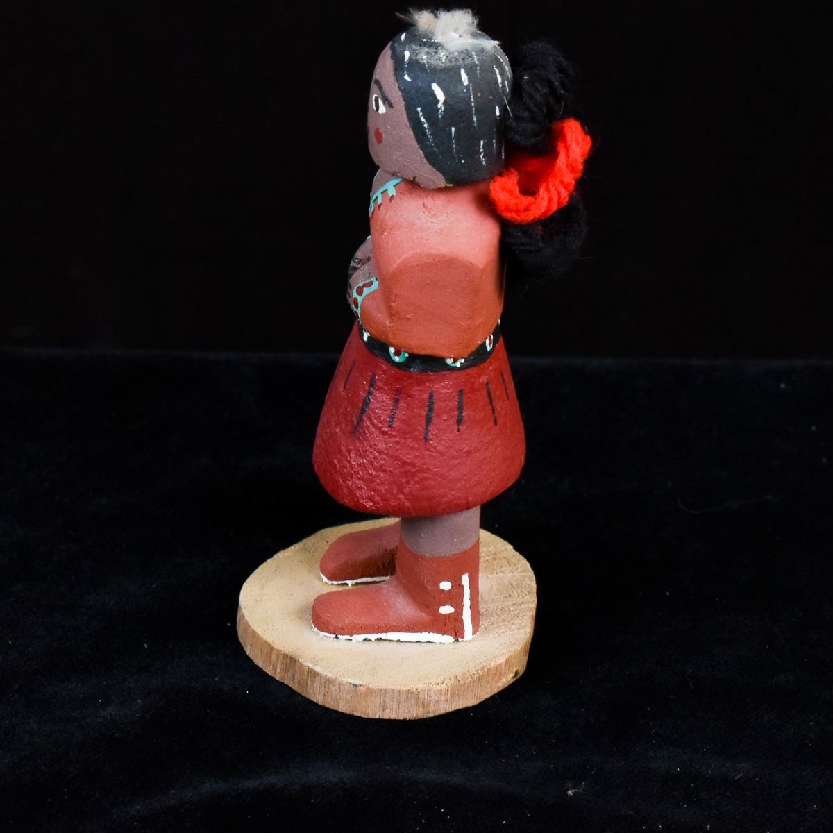 Native American Navajo Woman Kachina Doll by Navajo artist V. Long, measures 1.5'' x 4'' and is signed on the bottom