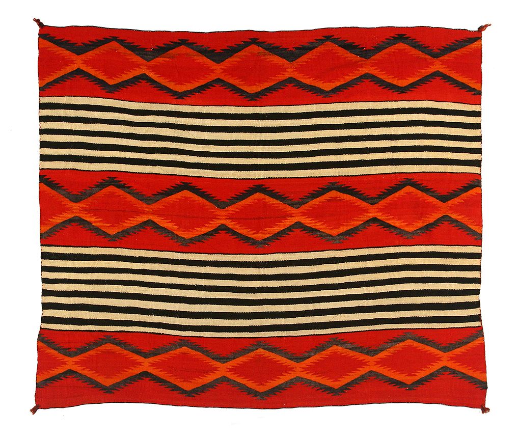 Navajo Woman's Shoulder Blanket. 5'7" x 4'9" Silky soft 2nd phase Chief variant wearing blanket woven from all handspun native long staple churro wool. Transitional - circa 1890. (est. $4,000-6,000). CONDITION REPORTS: www.auctioninsantafe.com/docs/cr2012.pdf