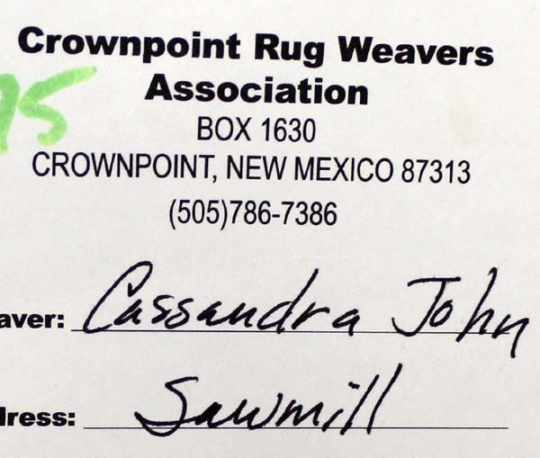 Native American Navajo Wool Textile Sampler by Cassandra John, measures 13'' x 9'', comes with original tag from Crownpoint Rug Weavers Association, beautiful colors