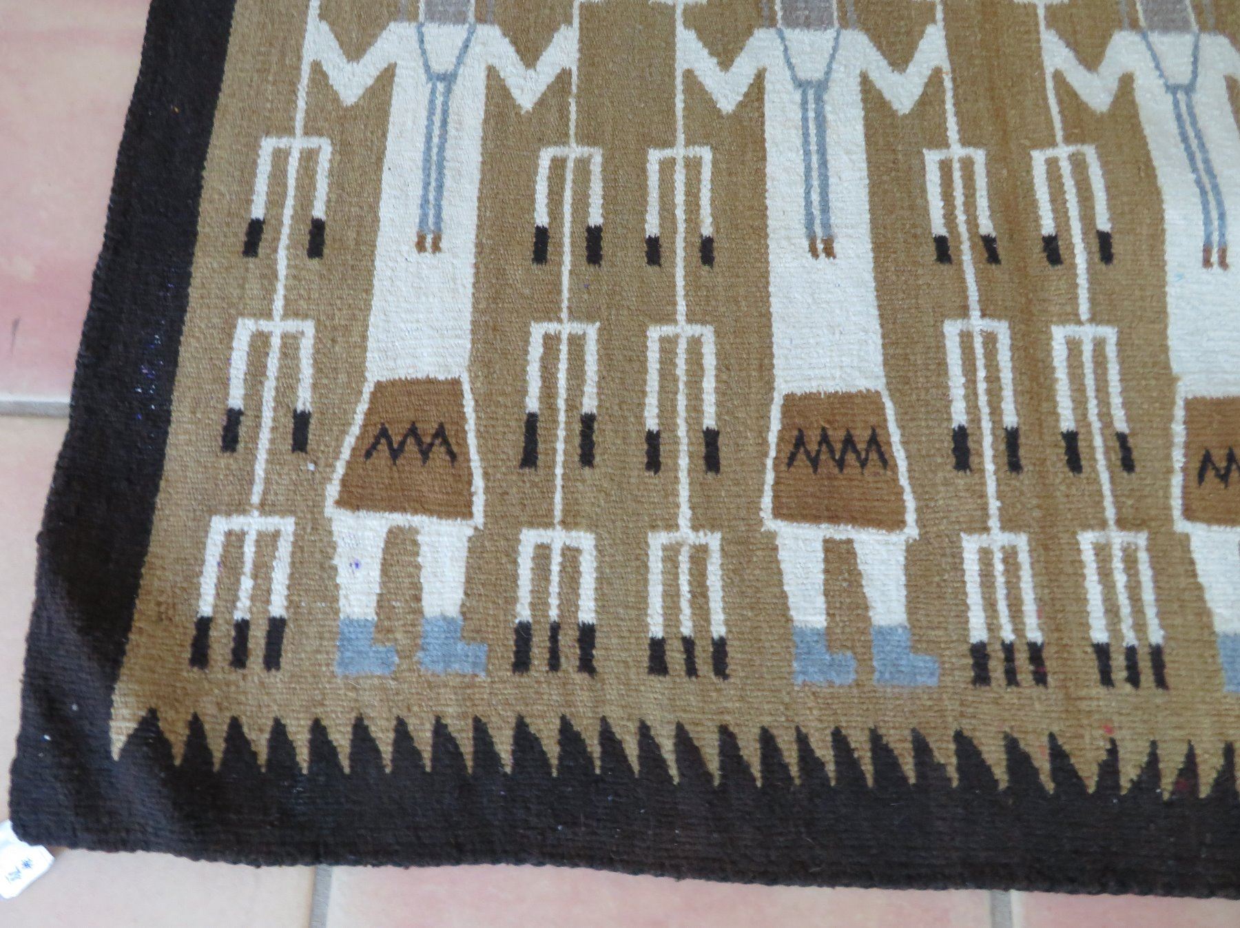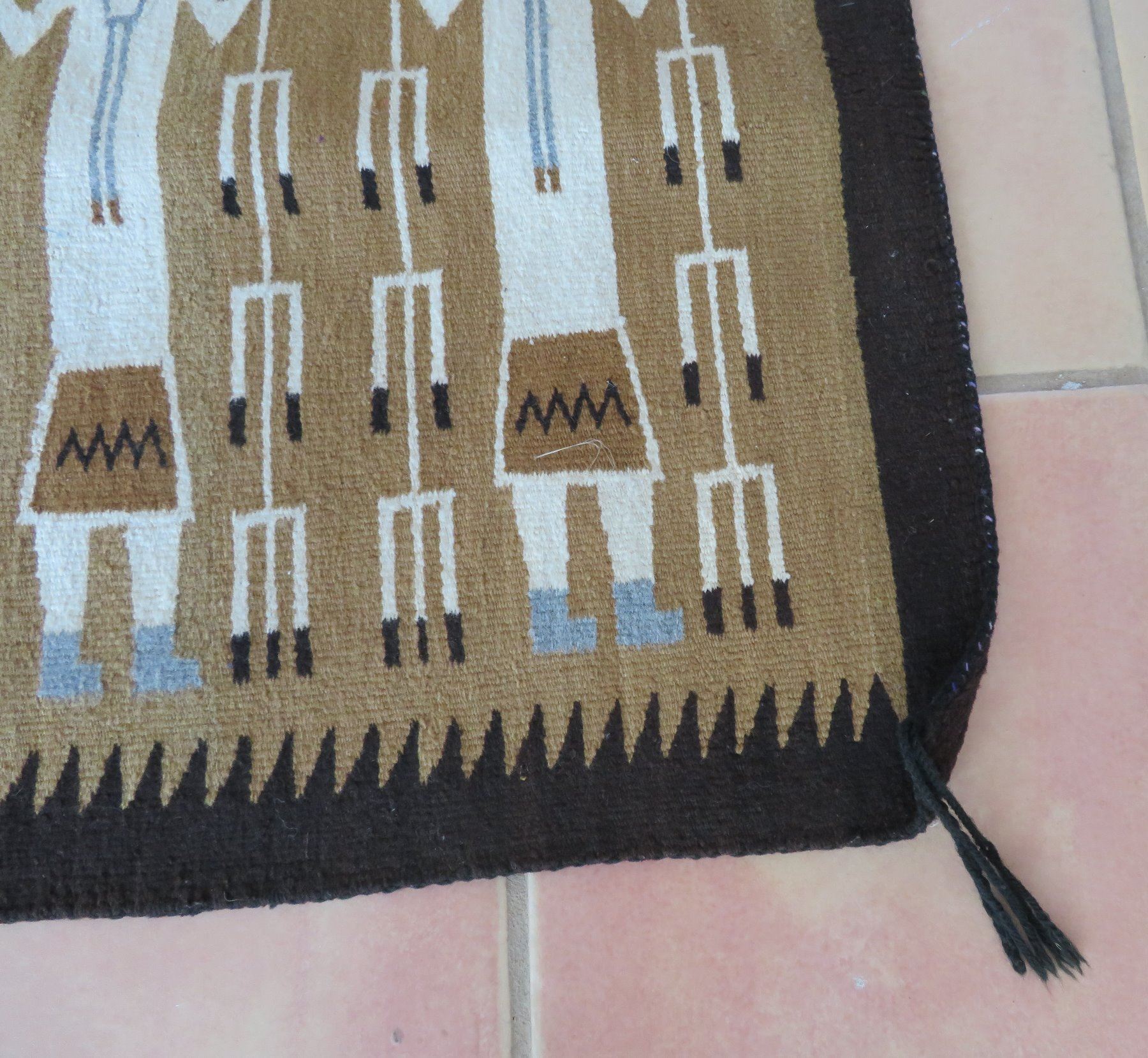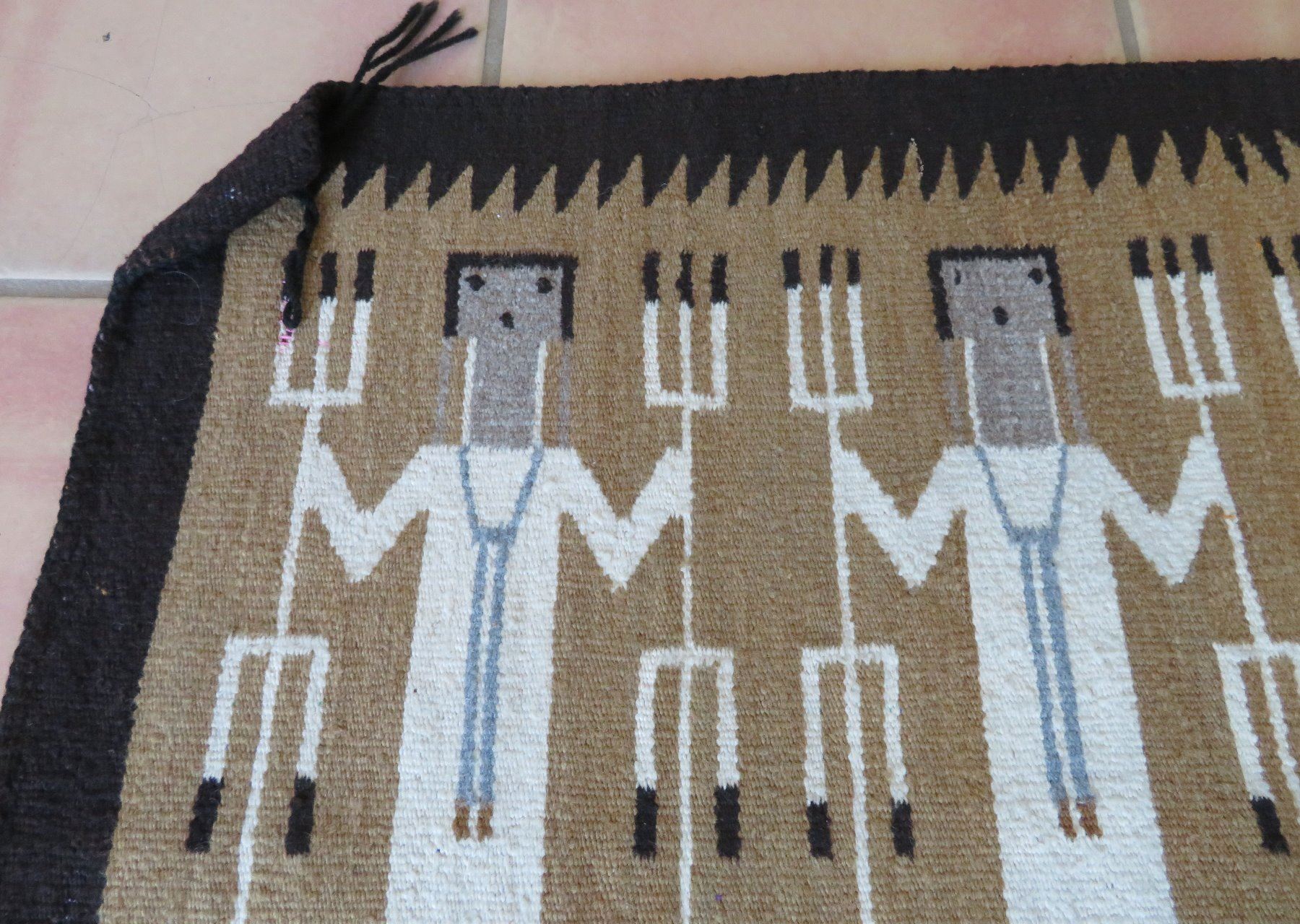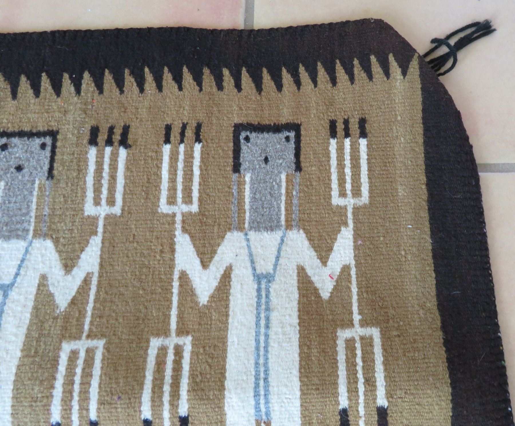 Navajo Yei Rug, c. 1930-40s. Made of wool and dyed yarn, the item measures 2' x 3'. Navajo Pictorial Yei, polychrome rug. Condition: Excellent with no visible weave damage, see images. Shipping: $26.50 w/insurance and signature, due to value.