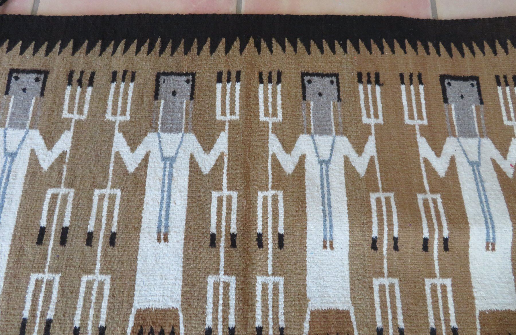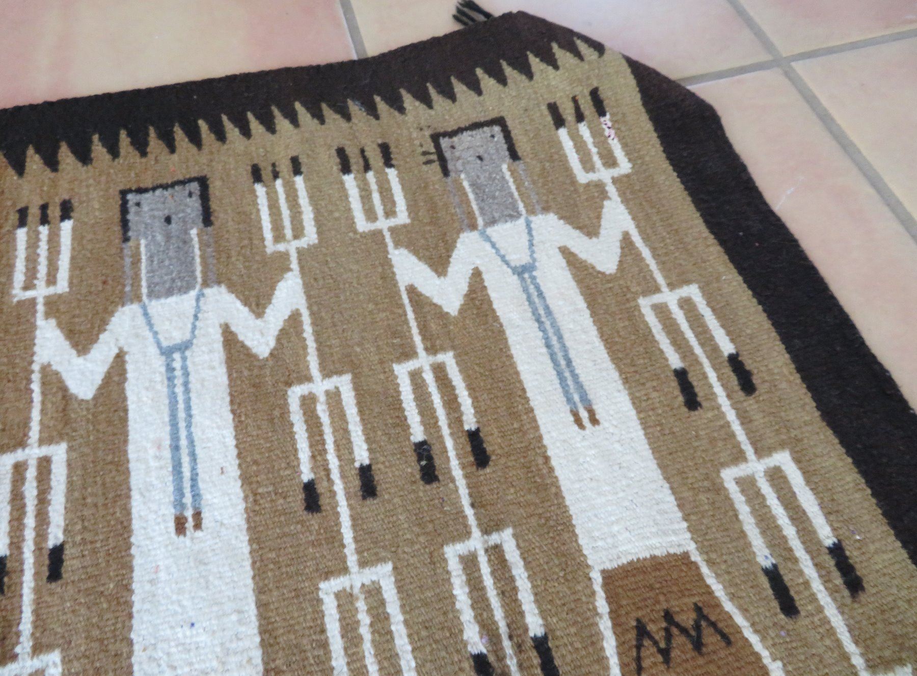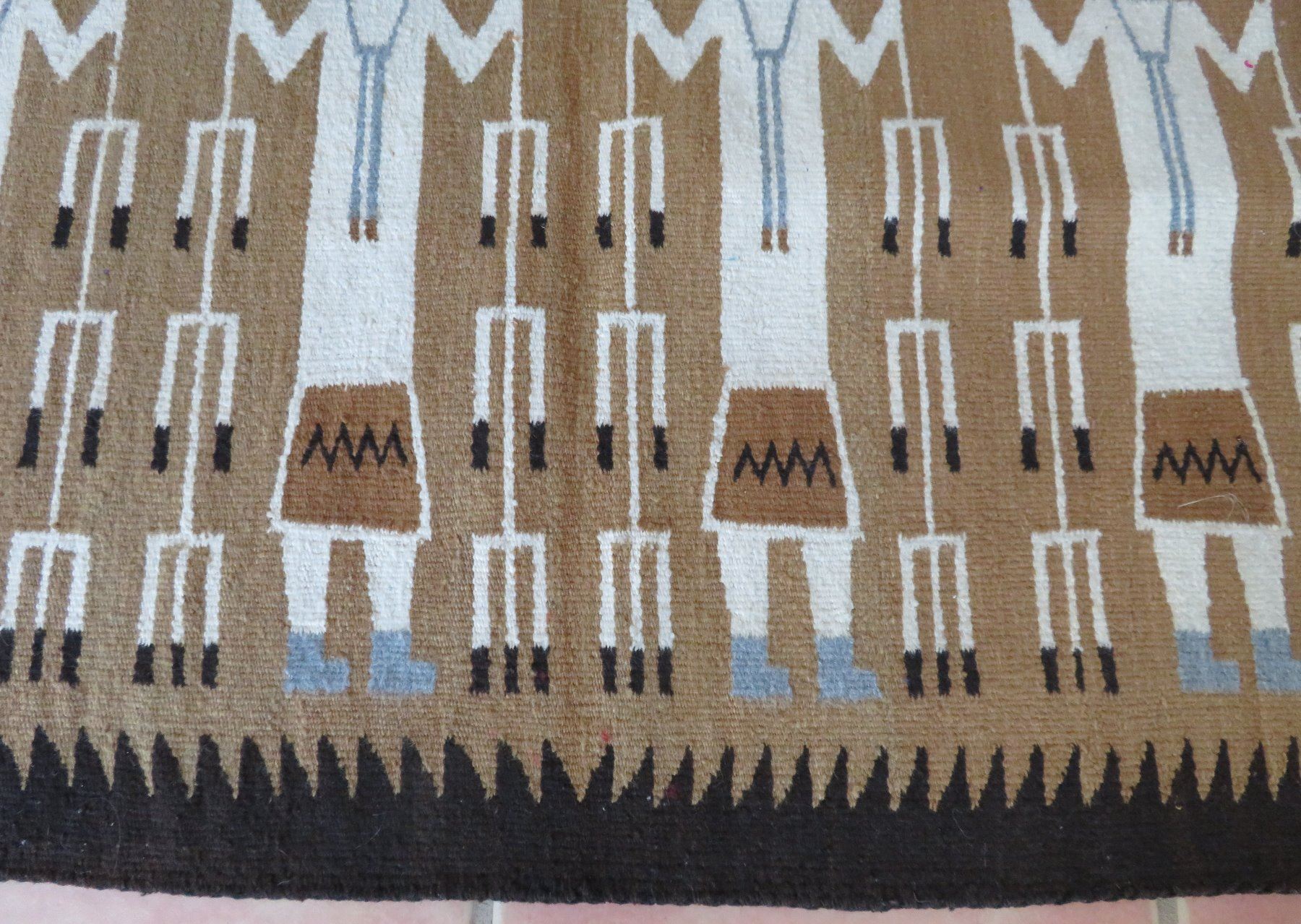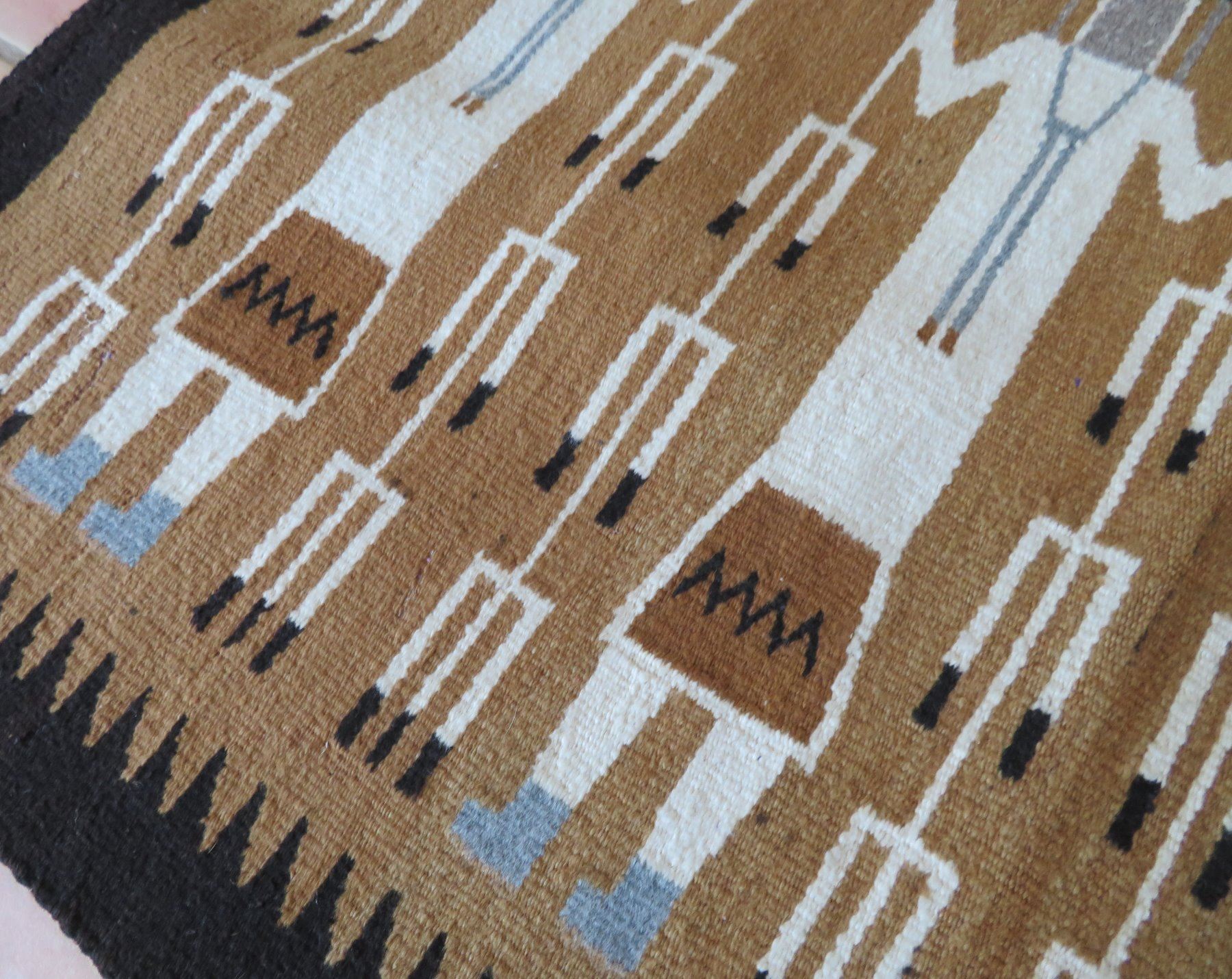 Navajo Yei Rug, c. 1930-40s. Made of wool and dyed yarn, the item measures 2' x 3'. Navajo Pictorial Yei, polychrome rug. Condition: Excellent with no visible weave damage, see images. Shipping: $26.50 w/insurance and signature, due to value.