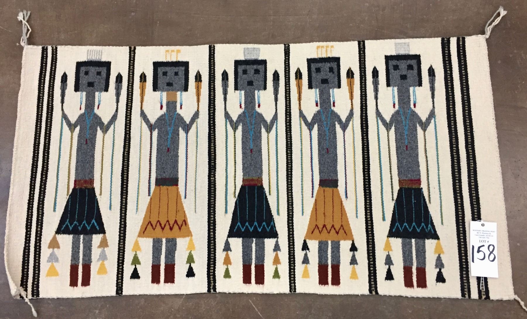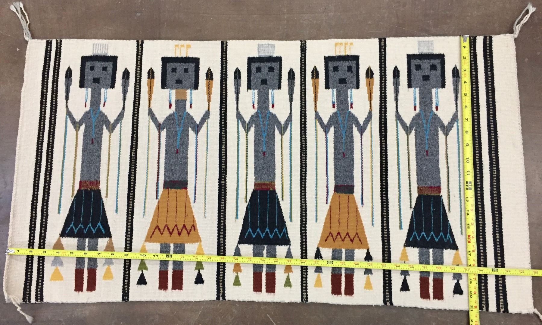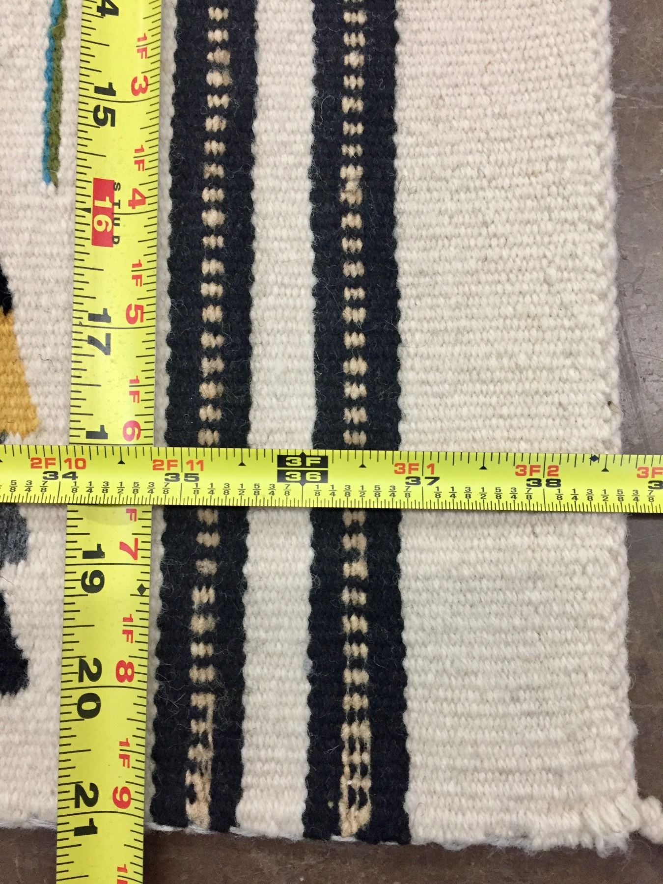 Description: For sale in this lot is a vintage, tightly woven, Navajo Yei Textile featuring multi-colors throughout the design.