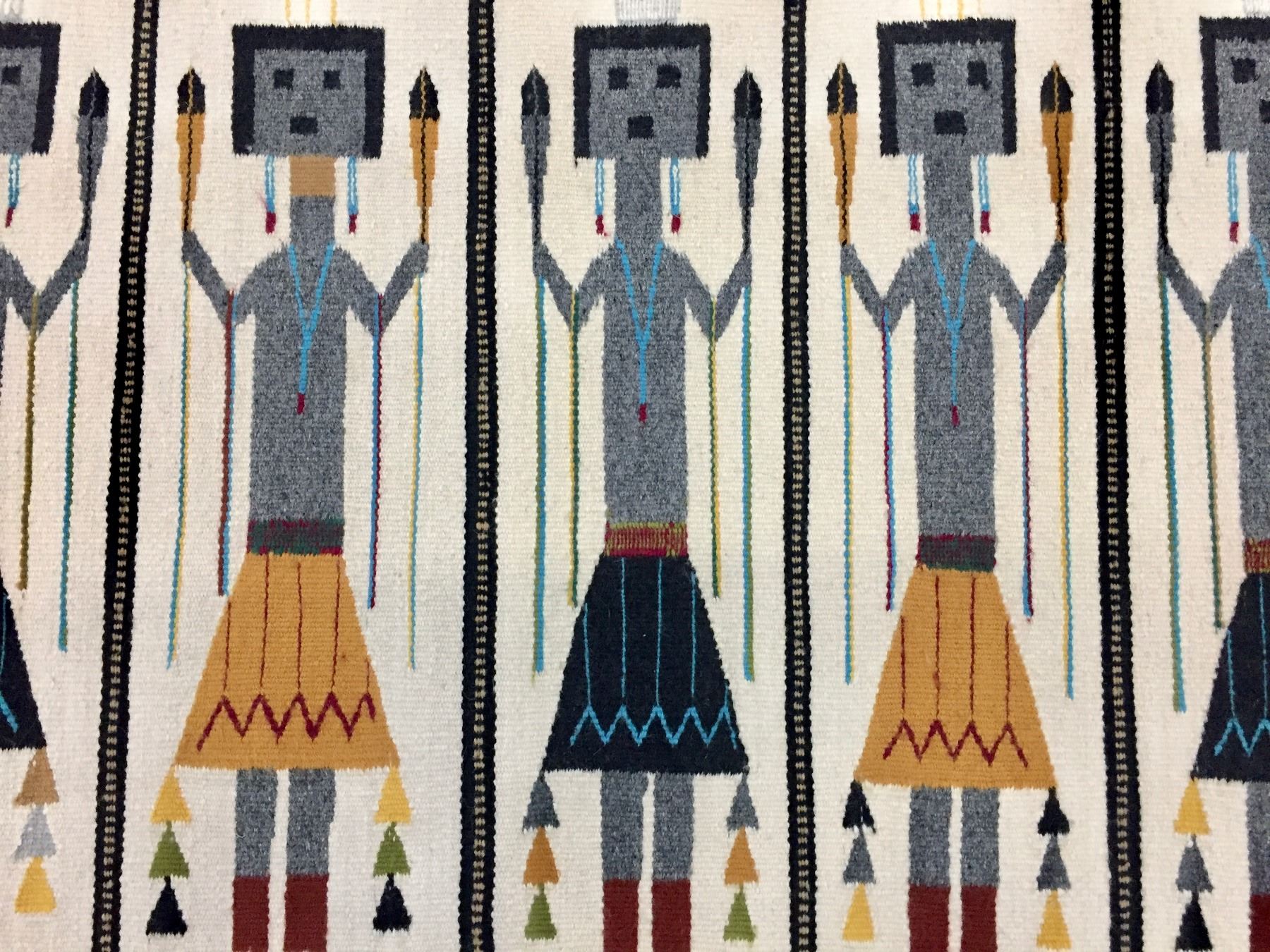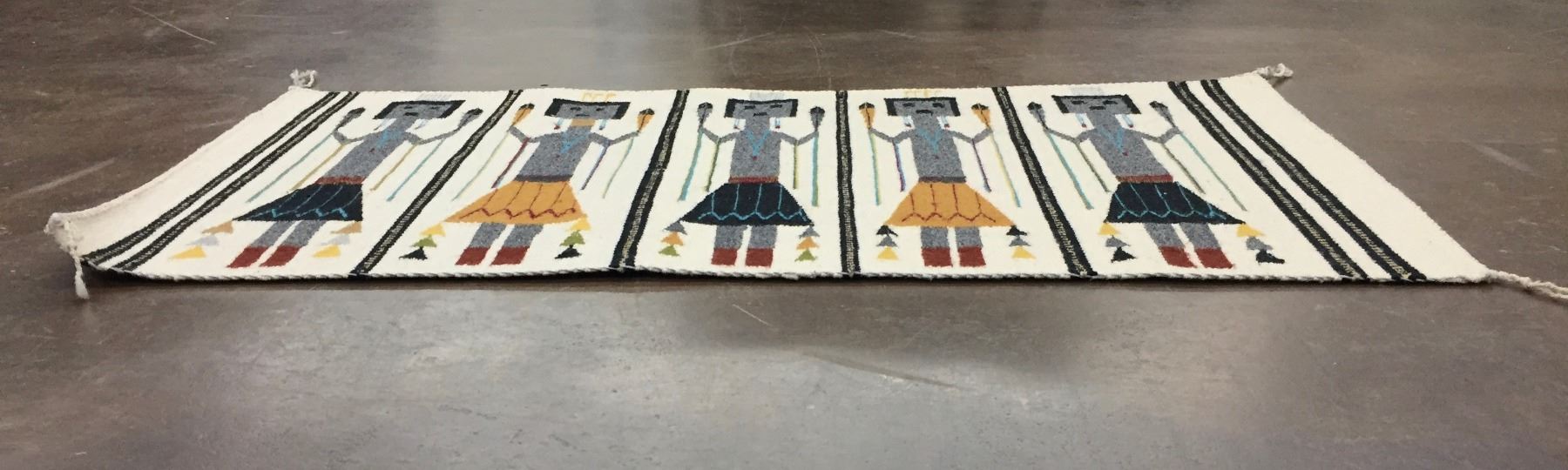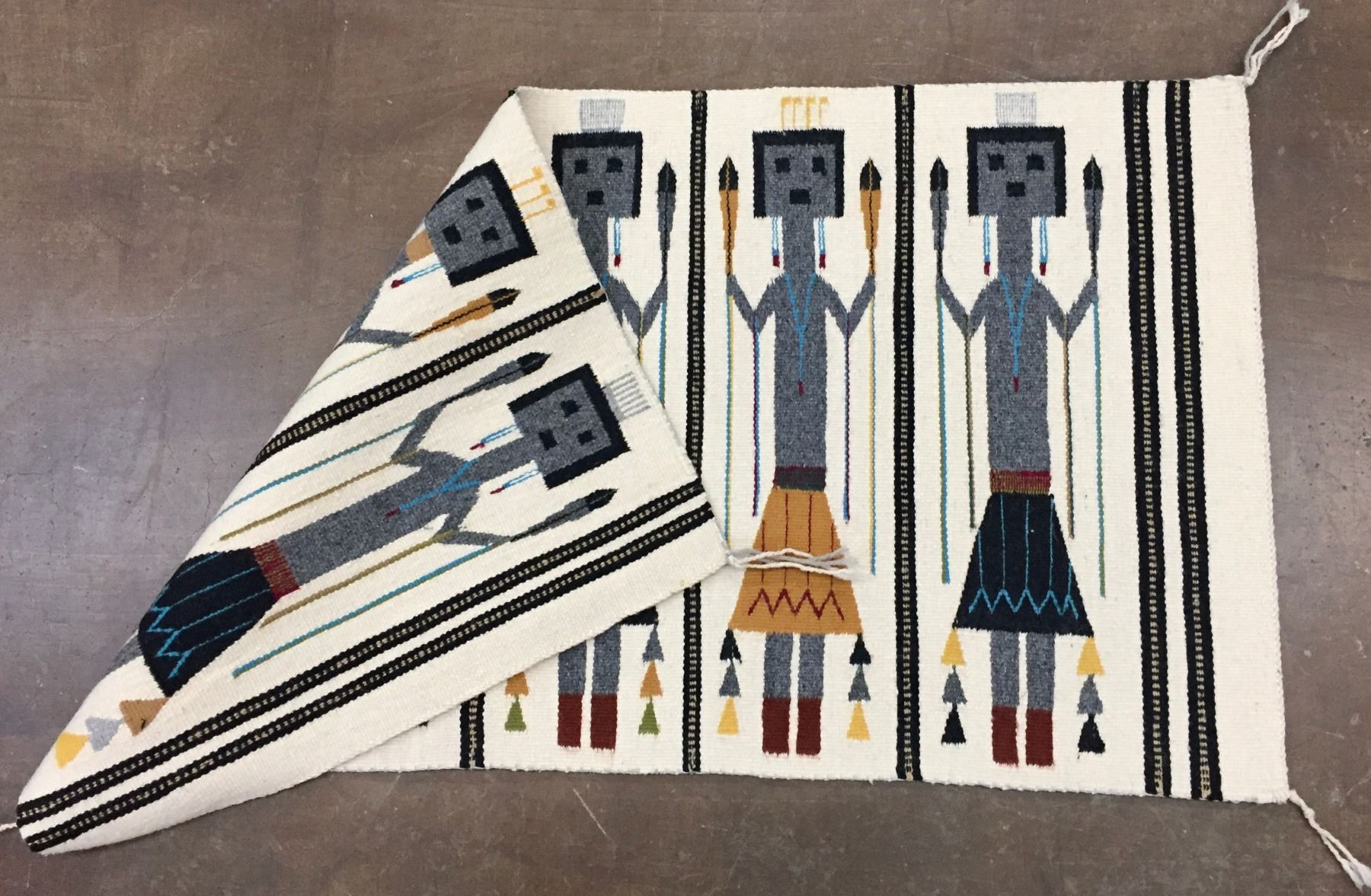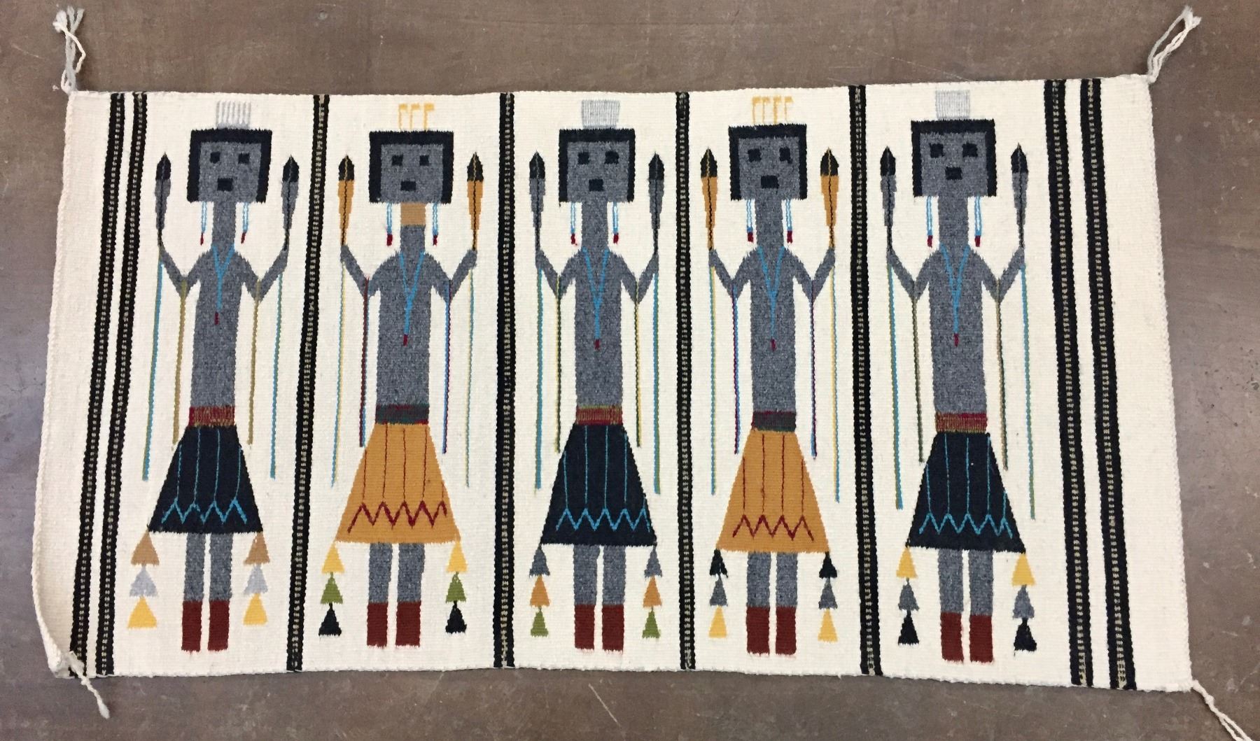 Description: For sale in this lot is a vintage, tightly woven, Navajo Yei Textile featuring multi-colors throughout the design.