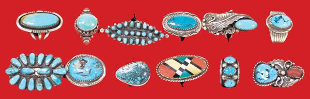 Circa 1970-1980s, Collection of 12 choice vintage Navajo & Zuni hand wrought silver, turquoise, and coral rings. Various sizes