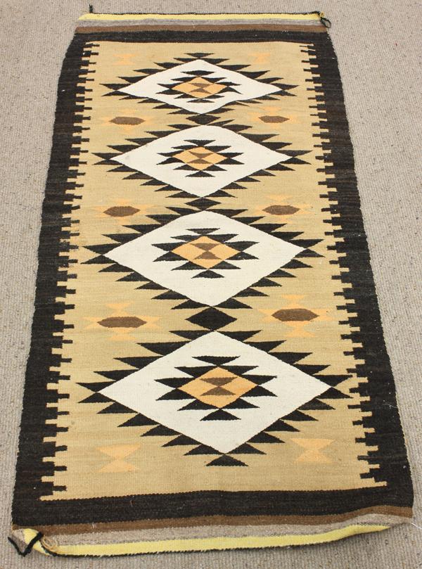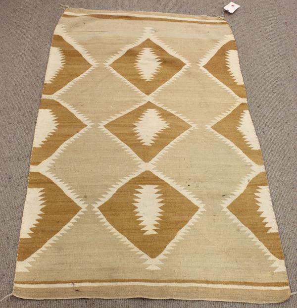 (lot of 2) Navajo blankets, each having a repeating diamond pattern 5'1'' x 2'7'', and 5'2'' x 3'1''