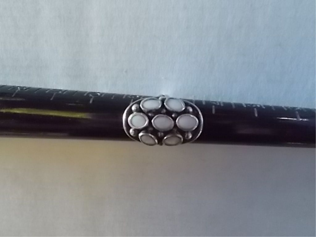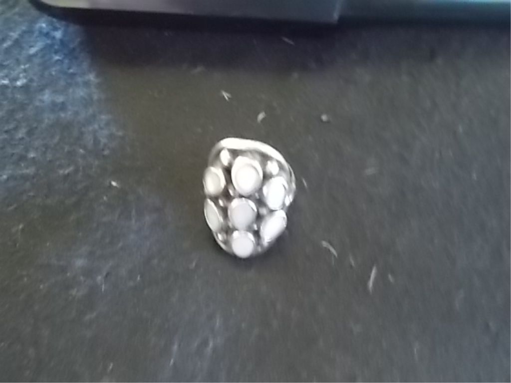 Navajo c1960, approximate size 8 ¼ sterling silver ring. Seven mother of pearl cluster ring w/studs.