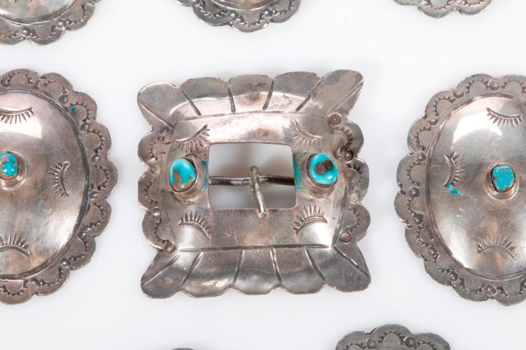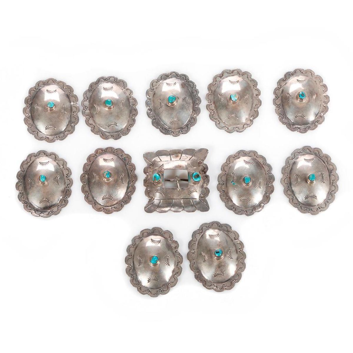 c. mid-20th century, with turquoise insets, the leather belt lacking. Insets measure 24 inches together. Weight: 163 g.