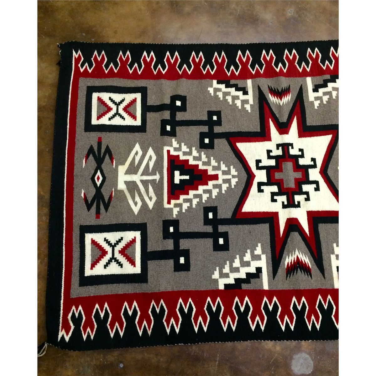 This beautifully done. large, storm pattern rug would be a nice addition to any collection. It measures approximately 48" x 73.5".