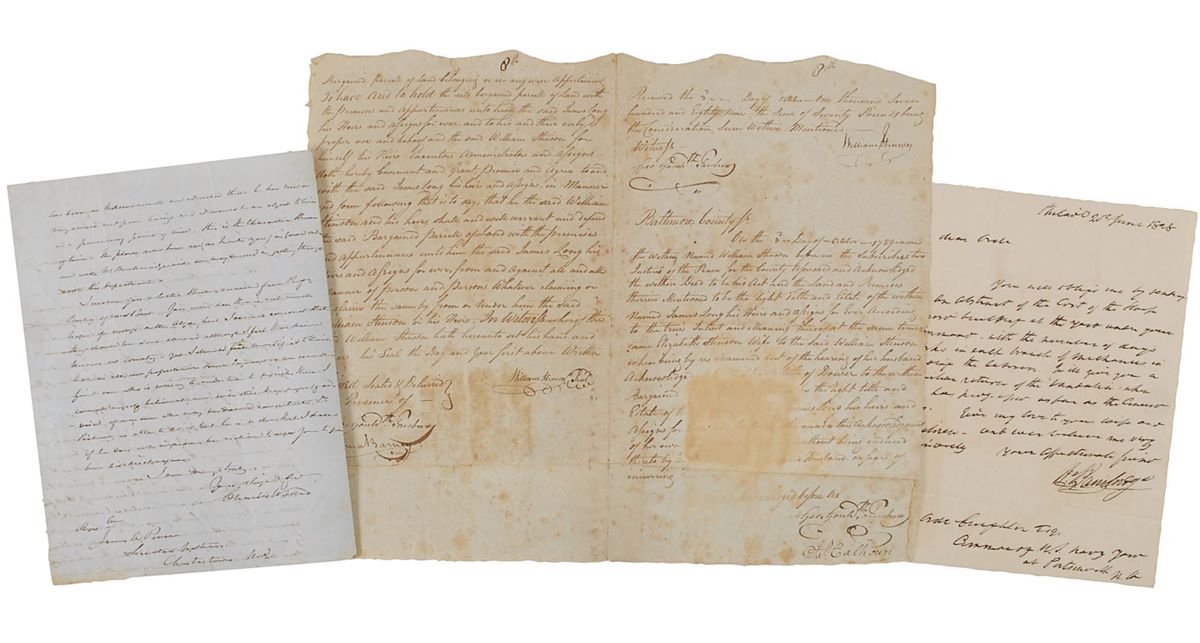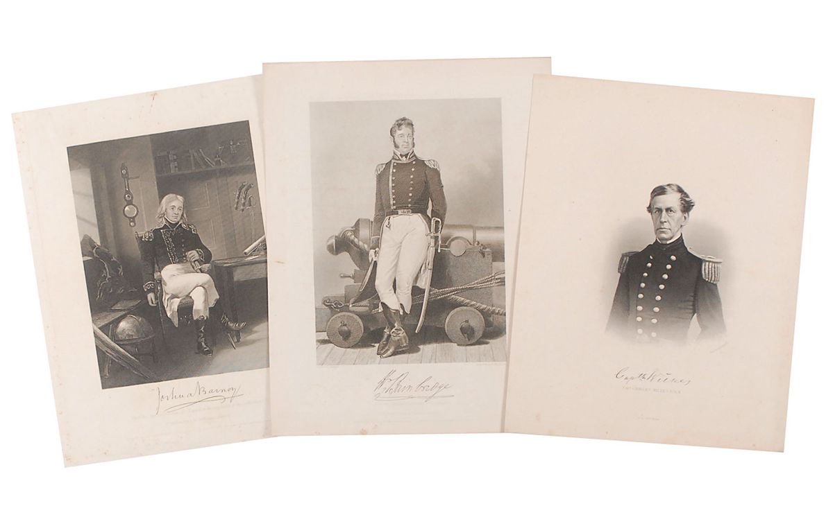 Collection of three items, each signed by a notable naval officer, including: William Bainbridge (LS), Charles Wilkes (ALS), and Joshua Barney (DS). In overall very good condition.